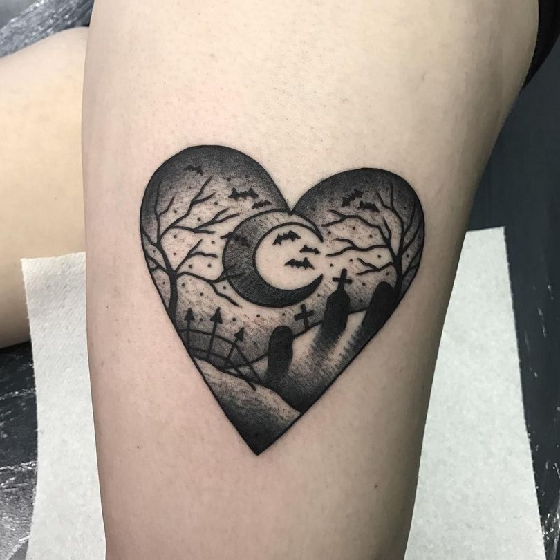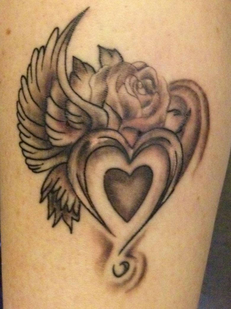 Les tatouages de cœur peuvent également se trouver sur la jambe, la cuisse ou l'avant-bras.