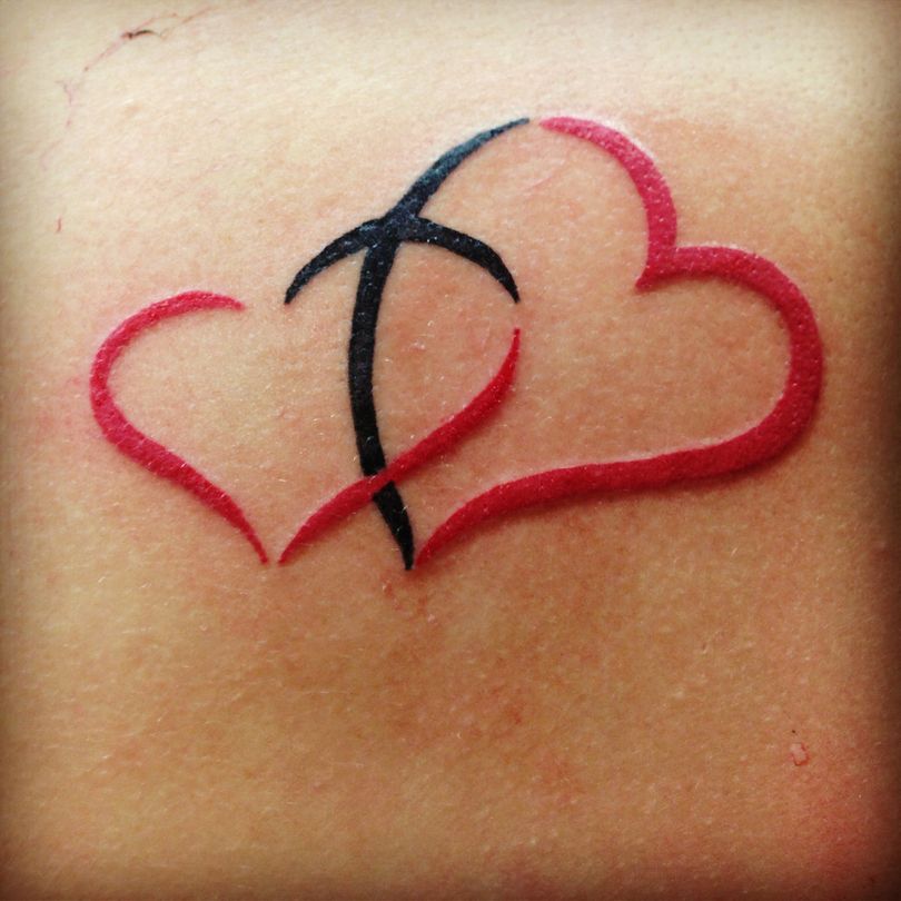 - L'amour est le sentiment le plus souvent véhiculé par les jeunes ou les amoureux de tout âge. Il peut s'agir d'un tatouage jumelé des deux partenaires sur n'importe quelle partie du corps.