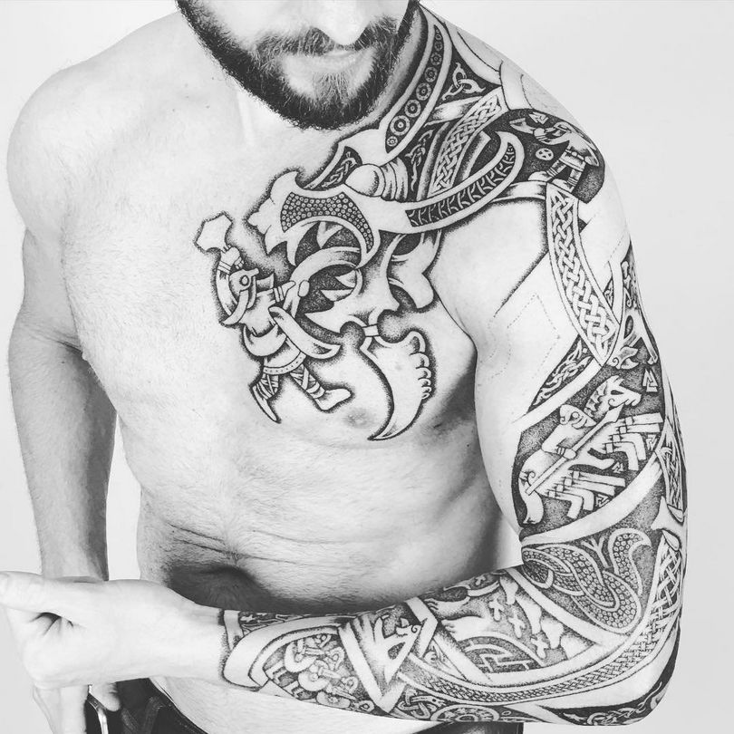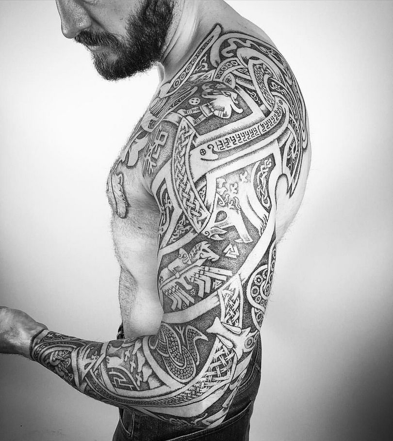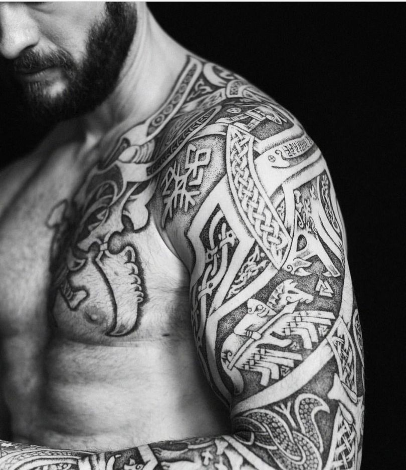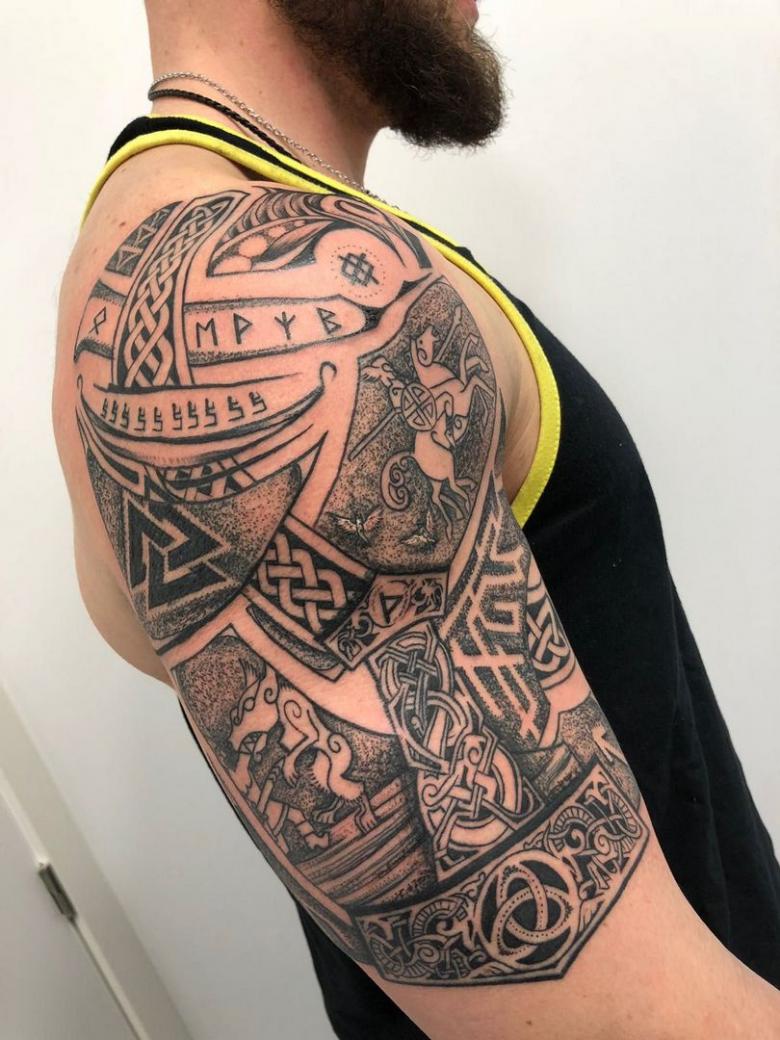 Tatouages scandinaves - mythologie, motifs et runes, lieu d'application (sur l'épaule, l'avant-bras, comme la manche)