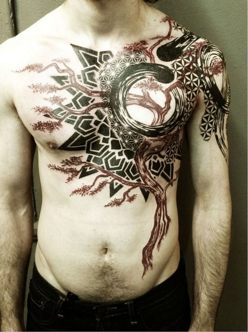 - ornements géométriques. Les motifs simples mais raffinés sont frappants dans leur splendeur discrète ; ils sont le plus souvent appliqués sur l'avant-bras ou font un tatouage de manche complète ;