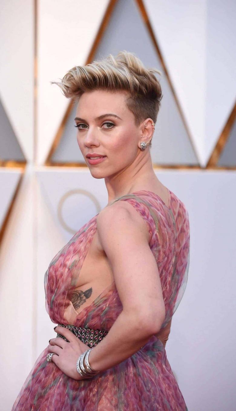 Scarlett a un fer à cheval tatoué sur le côté. L'image a été créée par le légendaire tatoueur français Fuzi. Le fer à cheval est accompagné d'une inscription en anglais, qui se traduit par "Lucky you".