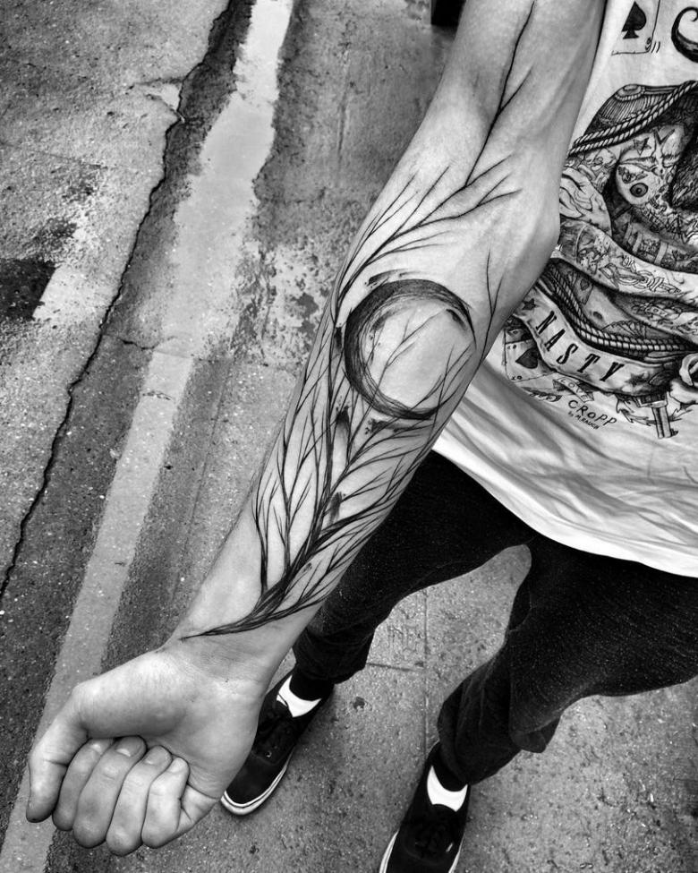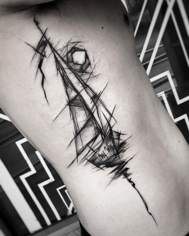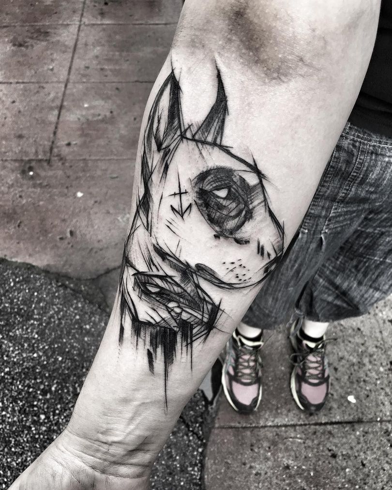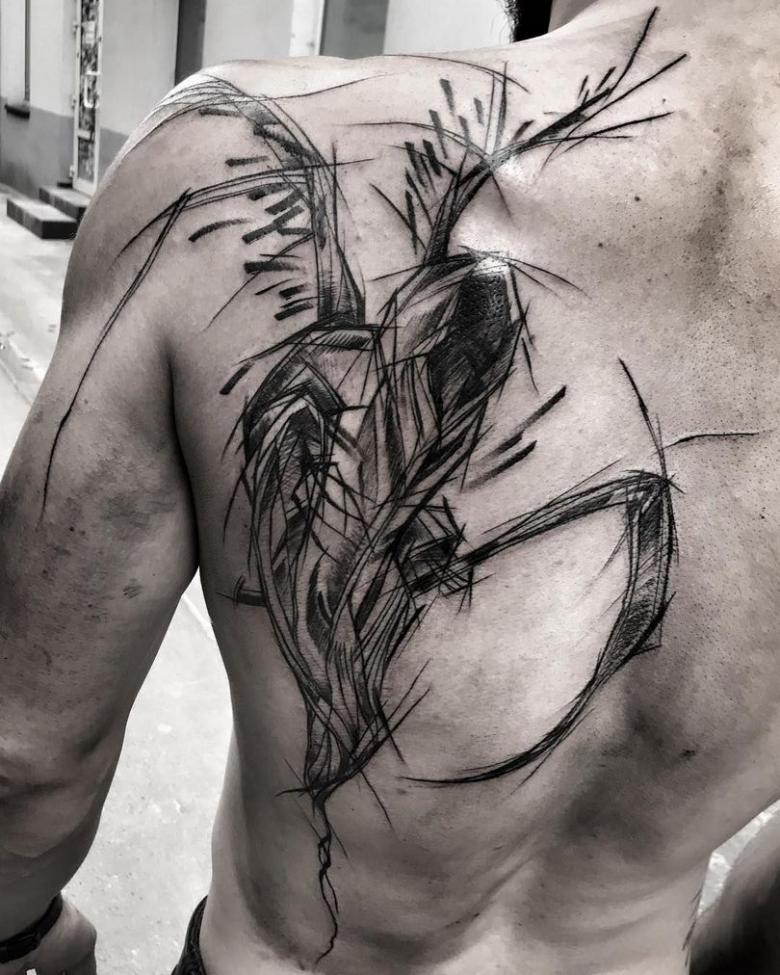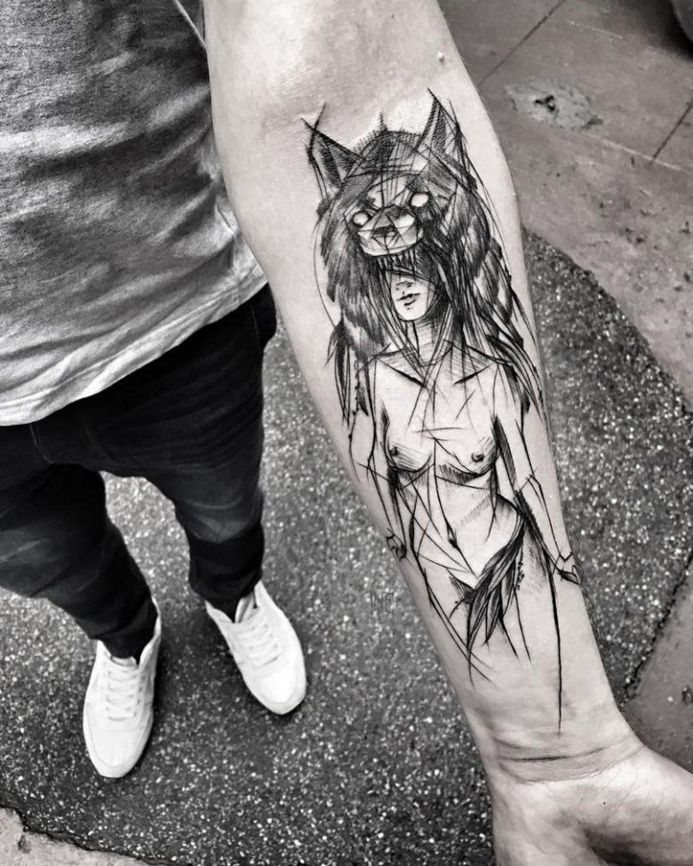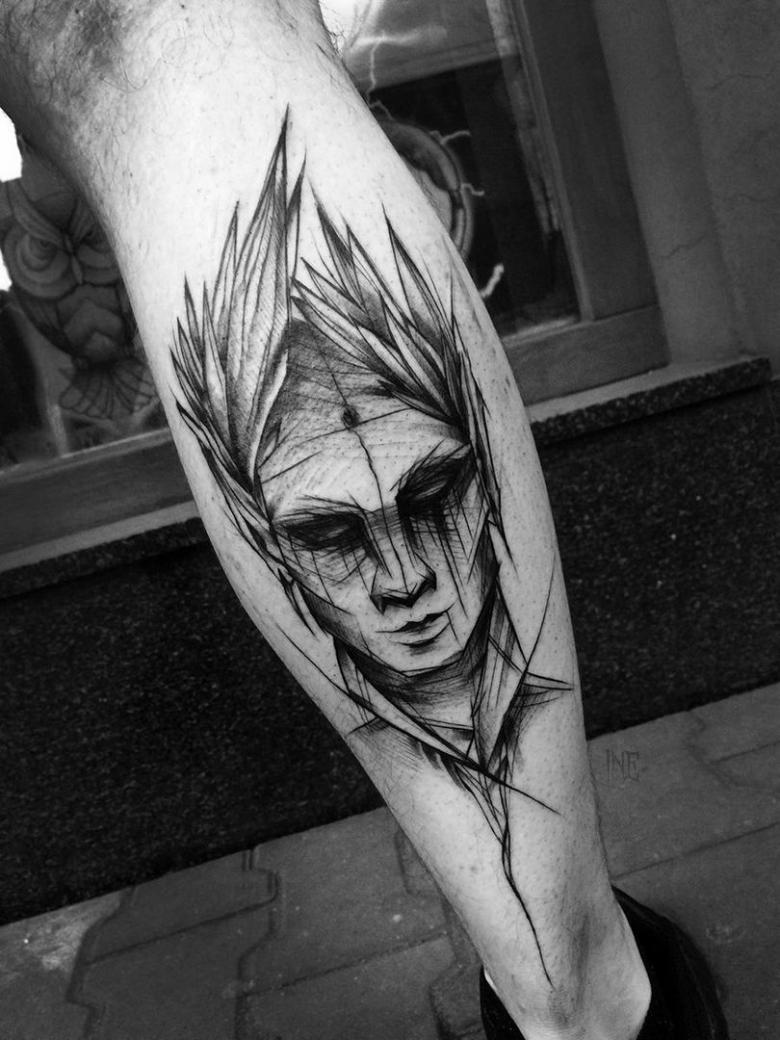 Le mot "tatouage" est traditionnellement associé à une image tridimensionnelle. Mais le tatouage dans le style du croquis peut être considéré comme une déconstruction du stéréotype. La caractéristique la plus frappante de cette tendance - l'application du croquis original, de l'image inachevée sur le corps. Le mot "sketch" en russe signifie "esquisse". Le mot "croquis" signifie "croquis original".