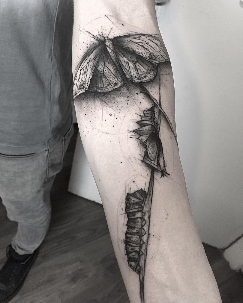 Un tatouage de style esquisse est un excellent choix pour une personne qui se rend pour la première fois dans un salon de tatouage. Vous pouvez ensuite modifier légèrement le dessin en ajoutant un petit détail supplémentaire ou une couleur saturée et vibrante.