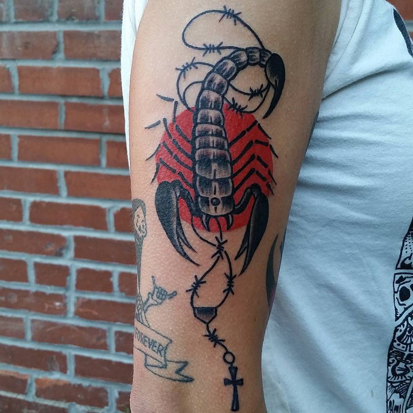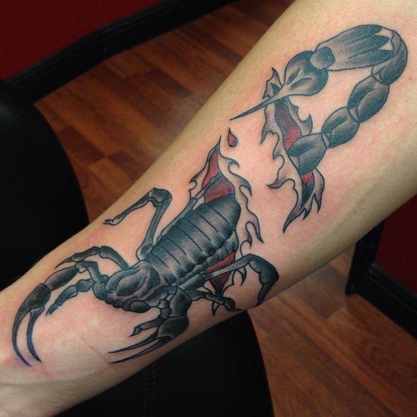L'agressivité est l'une des caractéristiques évidentes du scorpion. Il sait comment piquer, frapper, se défendre et se protéger. Tout comme le porteur d'un tatouage similaire. Le tatouage peut être un symbole d'intimidation pour l'ennemi.