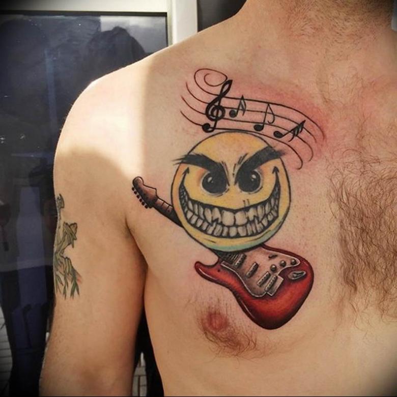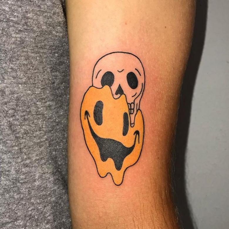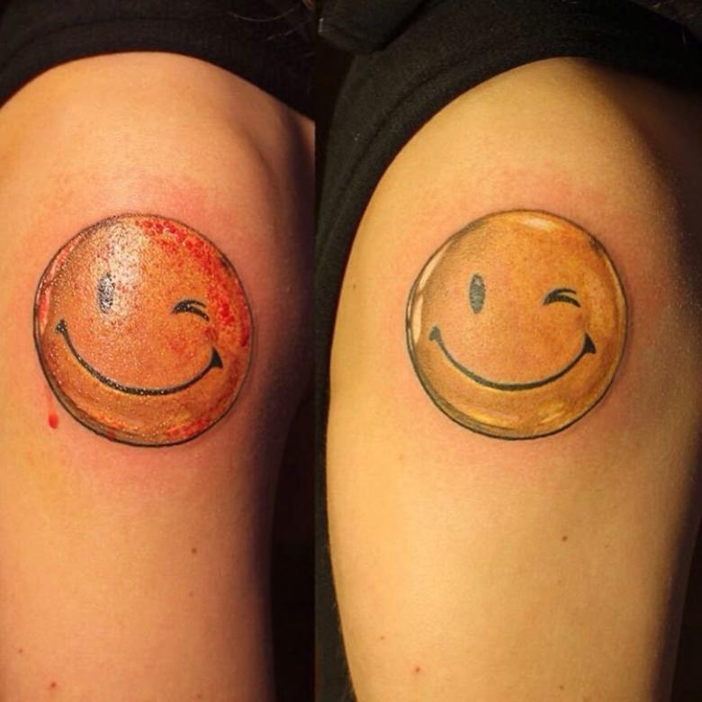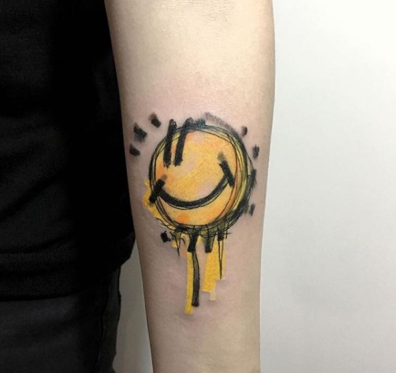 Le tatouage smiley est un tatouage très populaire - un symbole simple qui exprime l'humeur et le caractère d'une personne. Un visage souriant ou triste exprime une volonté de montrer ses émotions.