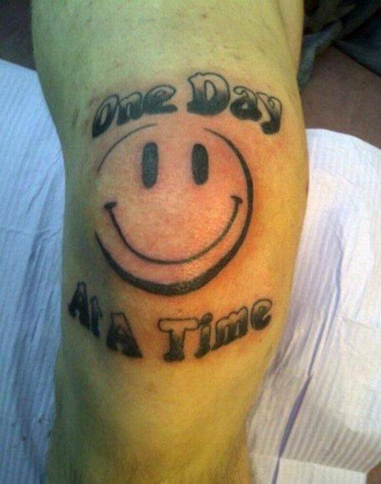Tattoo Smiley - descriptions complètes, y compris des smileys tristes et morts, des croquis amusants et des images