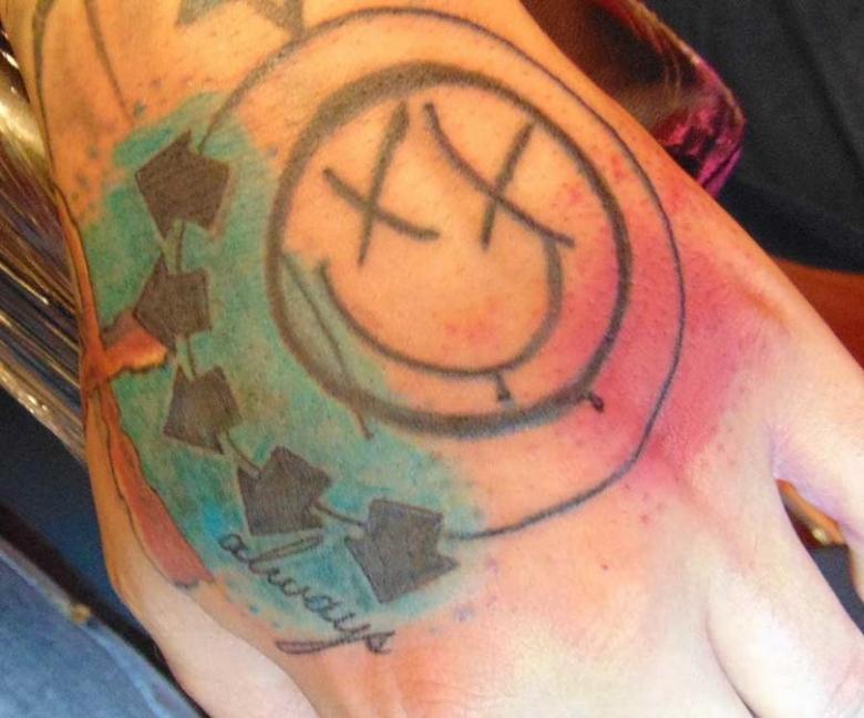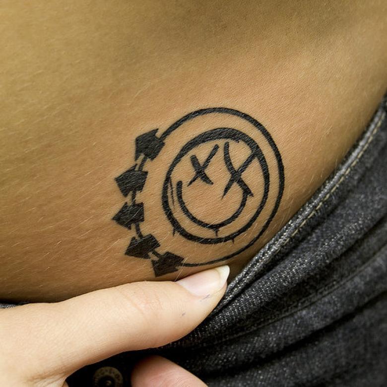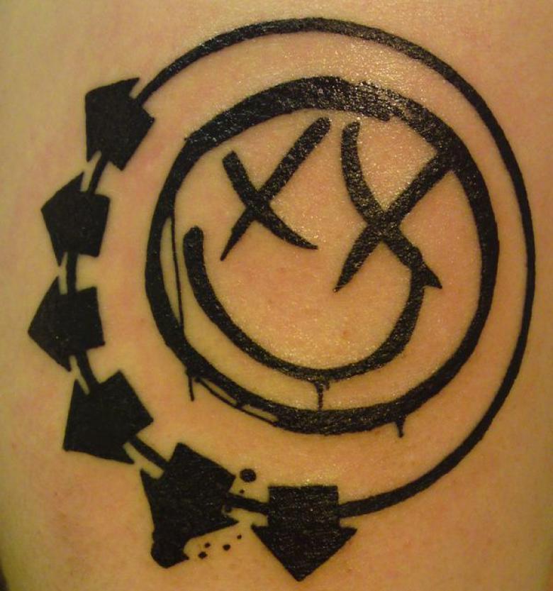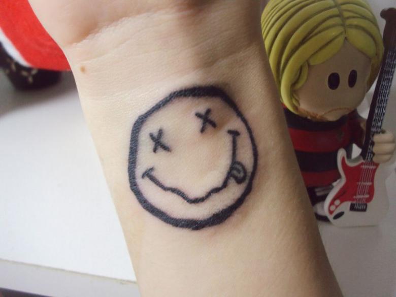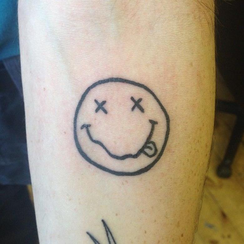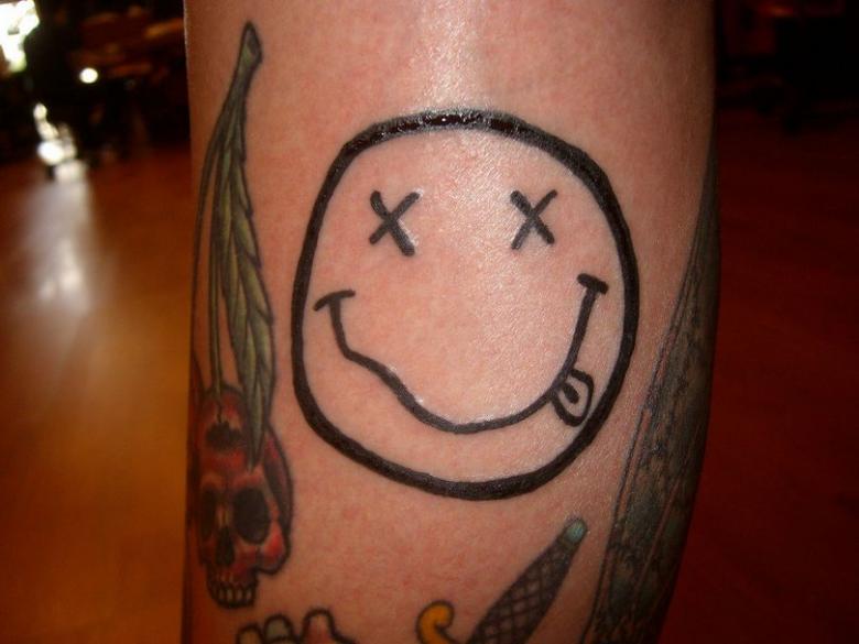 Un célèbre album des grunge-rockers Nirvana était décoré d'un smiley aux yeux fermés et à la langue tirée. Cette image est tatouée par de nombreux fans, en signe de révérence pour l'œuvre de Kurt Cobain. Le tatouage du visage souriant est également porté par les fans de rock.