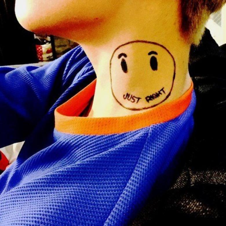 Ainsi le porteur d'un tatouage smiley n'admet pas lui-même son infantilisme, il y voit le caractère spécifique. Il ne change pas ses convictions et considère les adultes comme ennuyeux. Cet éternel Peter Pan - le hooligan et l'homme joyeux, qui apprécie chaque instant, sait vivre le présent.