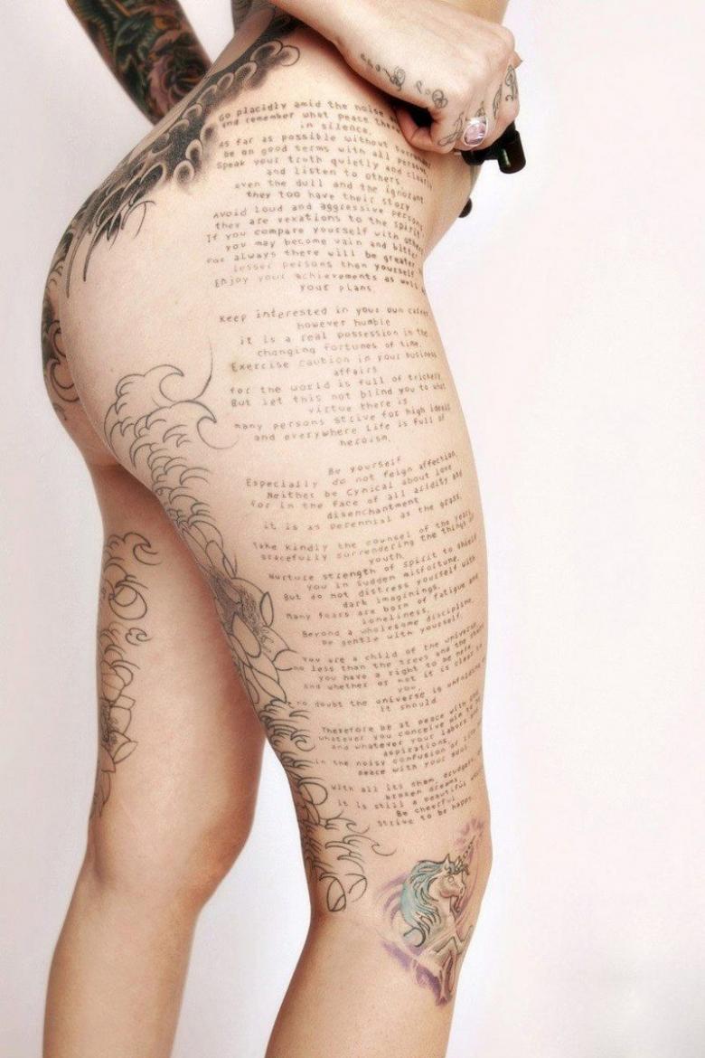 L'idéal serait de la soustraire autant que possible au regard des autres. Après tout, la phrase imprimée sur le corps ne devrait pas être une simple décoration, mais avoir une signification sacrée profonde. C'est pourquoi il ne doit être vu que par des personnes très proches.