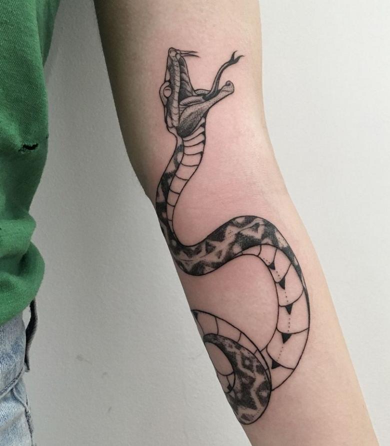Une fille avec un tatouage de serpent vous aidera dans toute situation problématique de la vie, mettra son épaule à contribution et ne s'abaissera pas à la trahison. L'essentiel - le serpent doit être représenté dans une position statique et ne pas faire preuve d'agressivité directe.