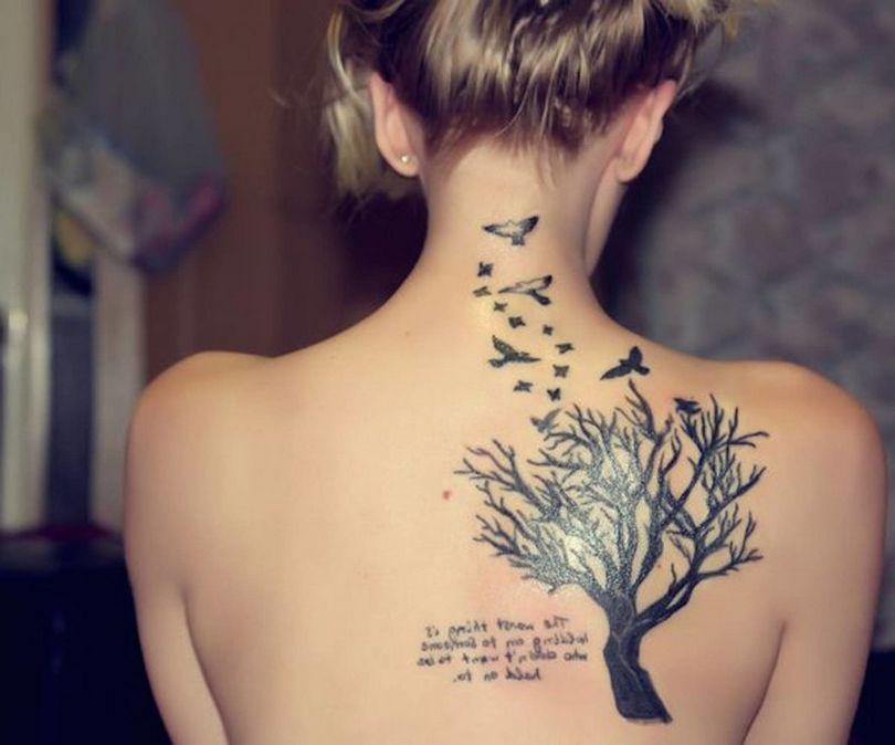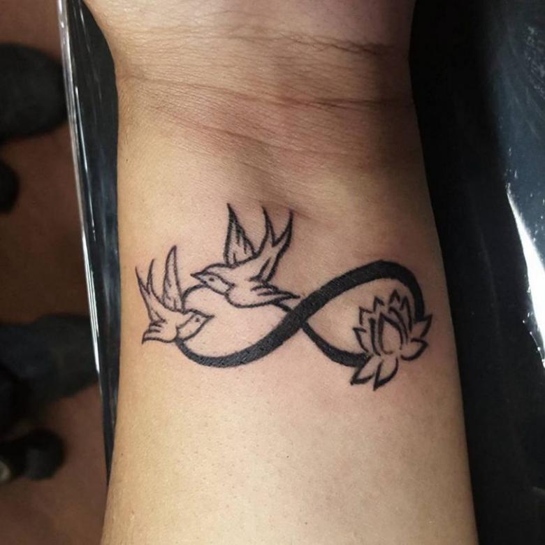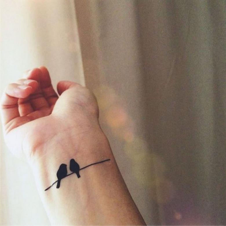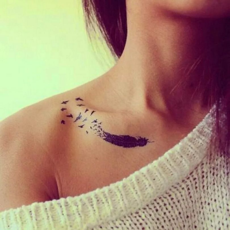 Ce tatouage est souvent inscrit sur les mains, les poignets ou les clavicules. Une fille avec ce motif est clairement une nature créative qui aime voyager. Les petites hirondelles qui s'envolent symbolisent la force d'âme et la richesse du monde du porteur.