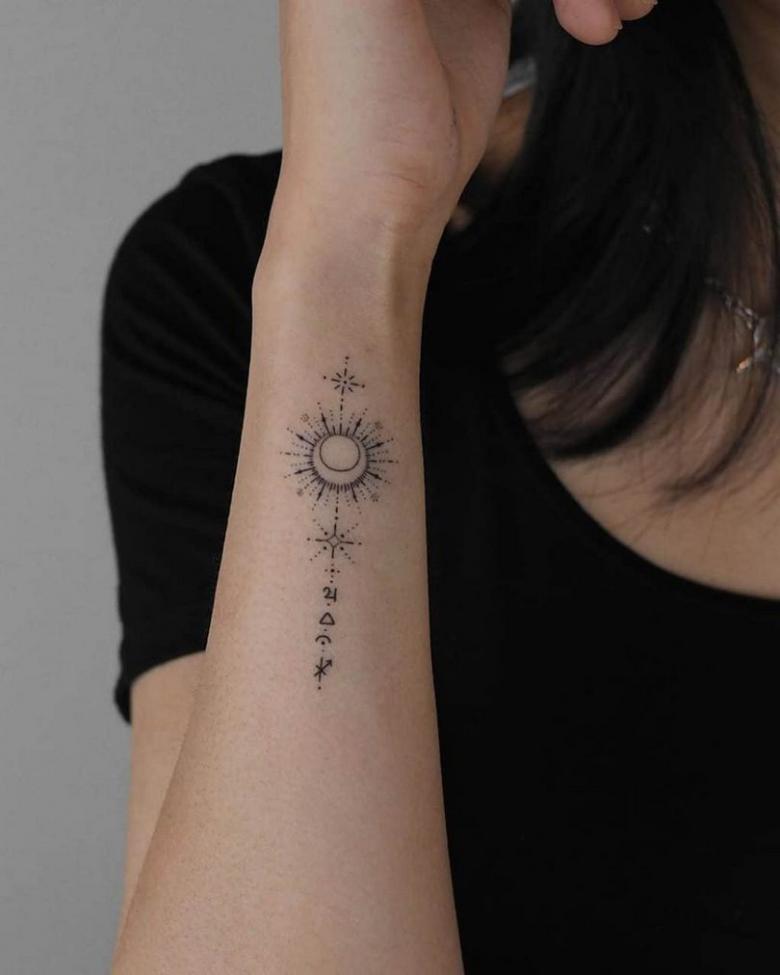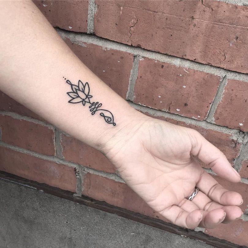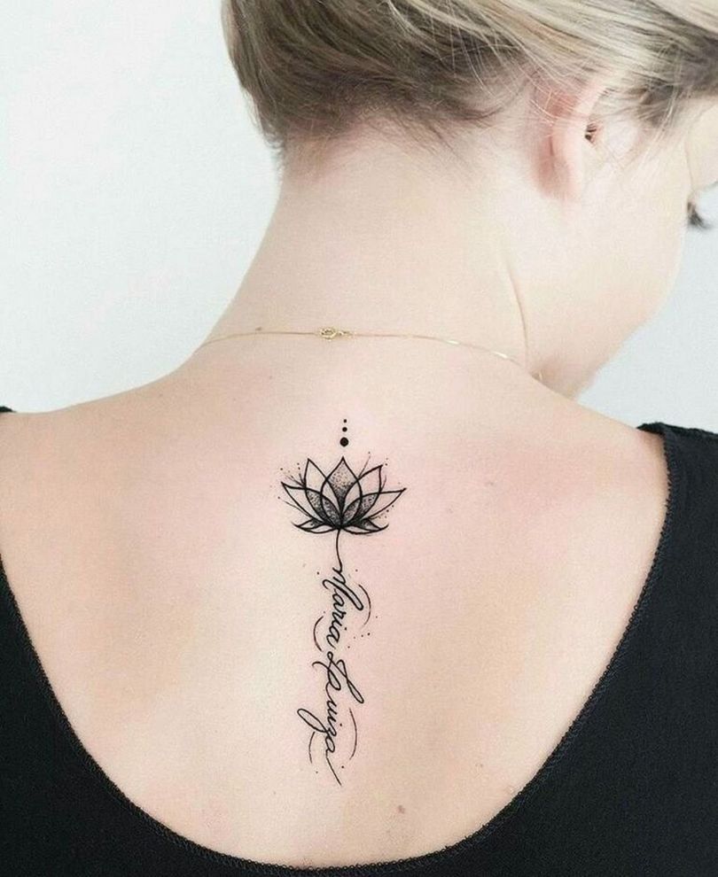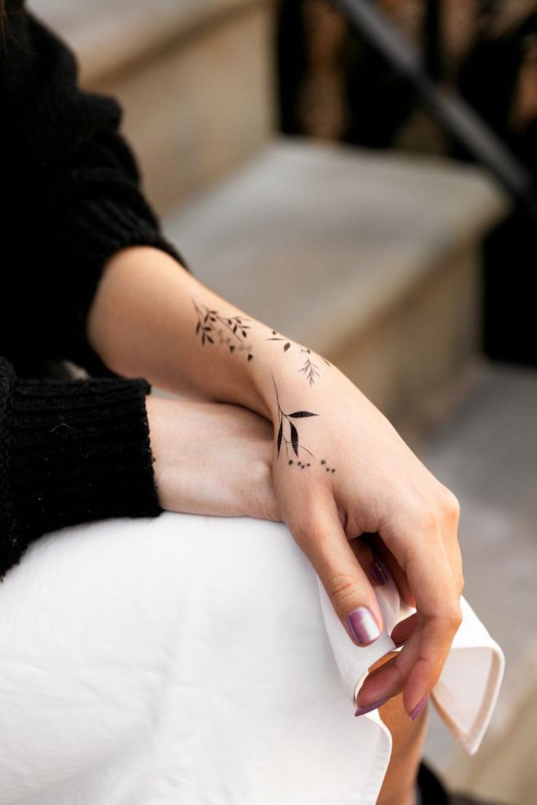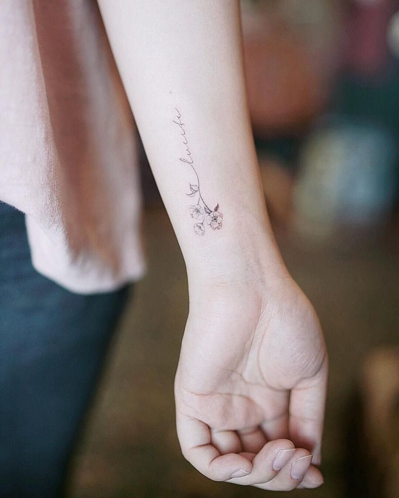 Et probablement la plus inoffensive, car les fleurs ne portent pas de charge sémantique particulière, il suffit de choisir une belle esquisse et de la placer sur n'importe quelle partie du corps : poignet, avant-bras, hanche ou même sous la poitrine.