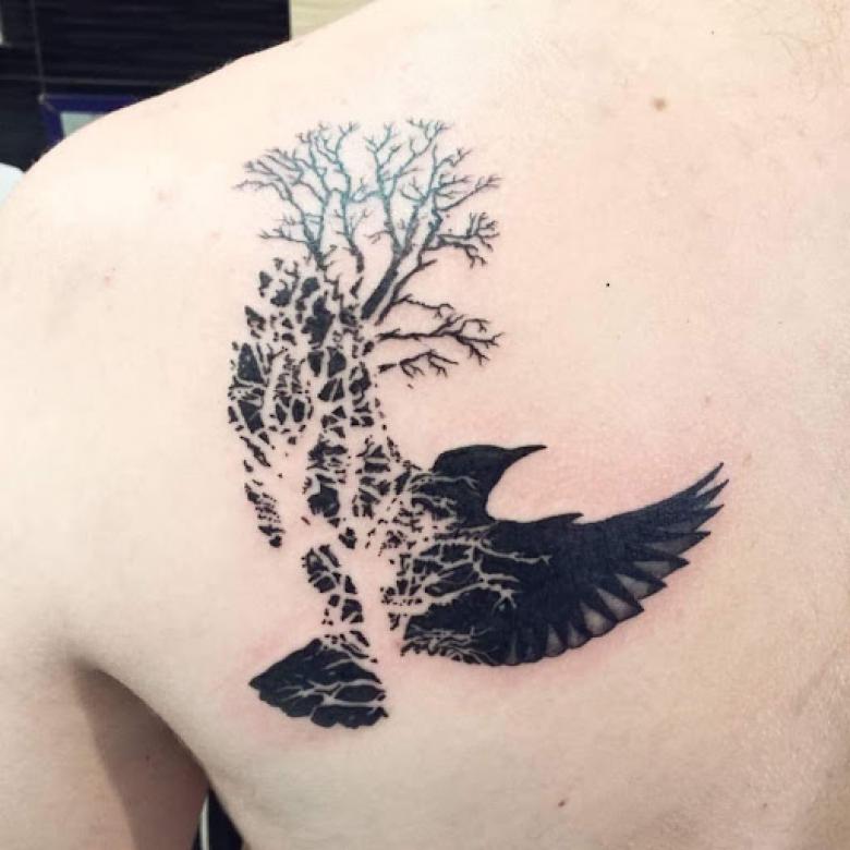 Oiseau. C'est une étendue d'air sans fin. Indépendance totale. Ce tatouage est choisi par les personnes courageuses qui préfèrent une volonté globale. Ils se battront pour leurs principes jusqu'à la fin. (Voir : Tatouage de l'oiseau de feu)