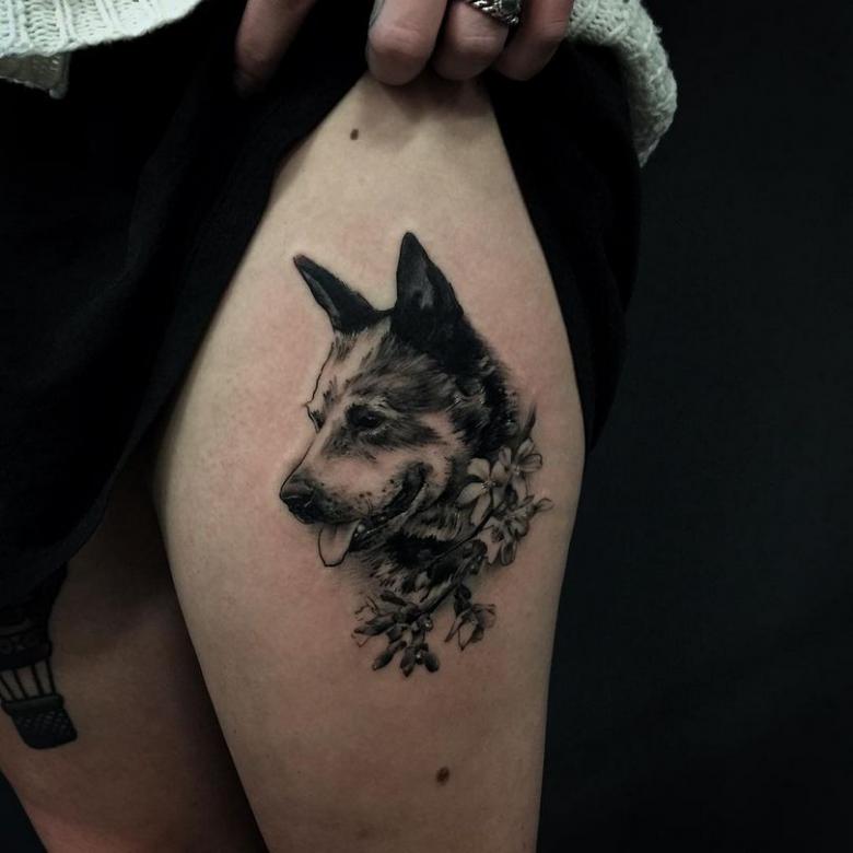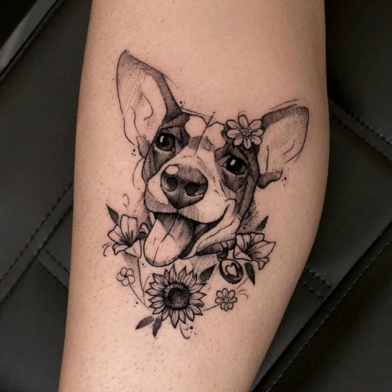 Tatouage d'un chien - croquis et significations pour les filles et les hommes, idées de photos créatives