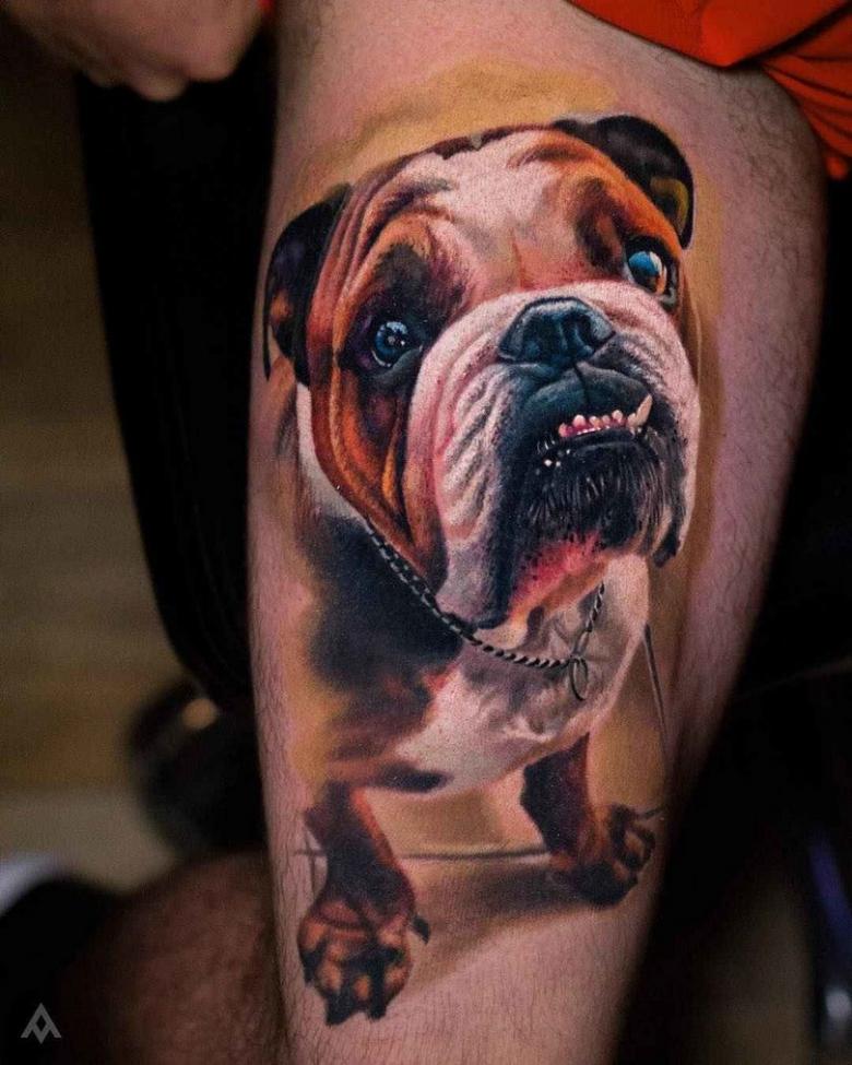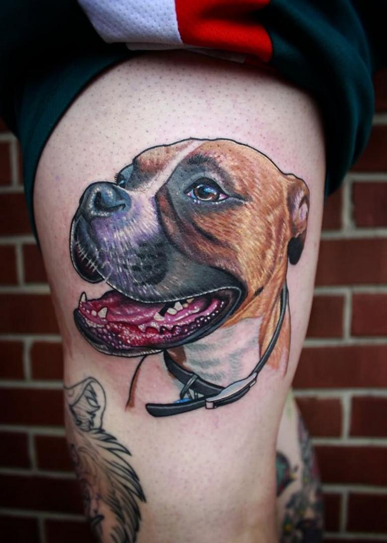 C'est la meilleure option pour les personnes qui veulent créer une image unique et à grande échelle. Si votre chien est ou était votre meilleur ami et que vous voulez toujours pouvoir le regarder sous son meilleur jour, vous pouvez envisager de vous faire tatouer un portrait de chien. La plupart des gens utilisent des photos de vrais animaux de compagnie pour cette tendance.