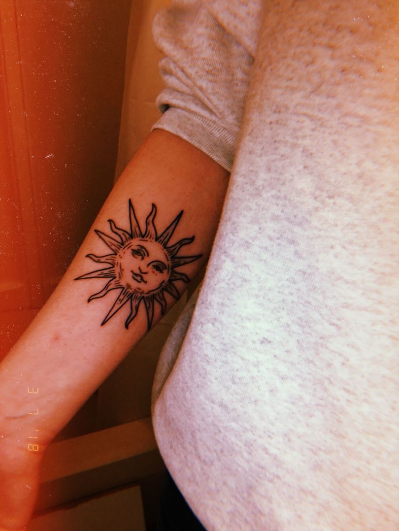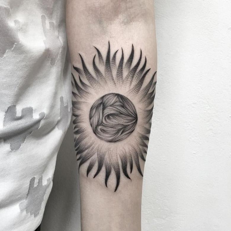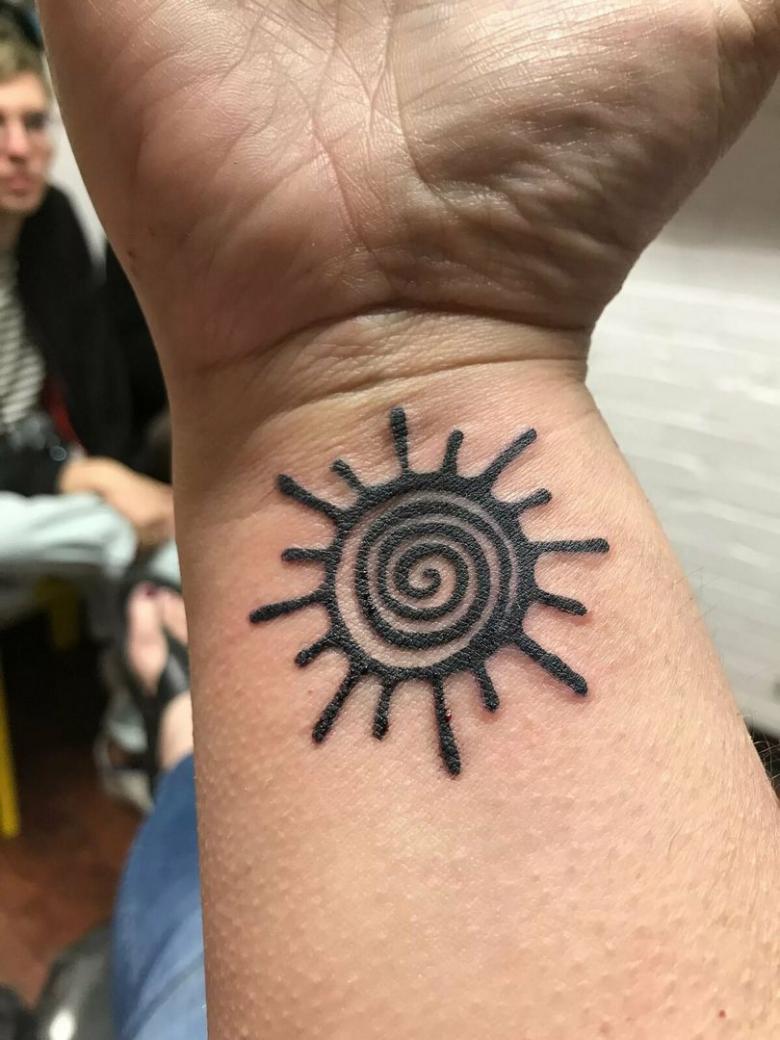 Tatouage du soleil - la signification pour les filles et les hommes, l'emplacement (sur le bras, le poignet, l'épaule, la main), les croquis originaux, les idées de photos et de vidéos.