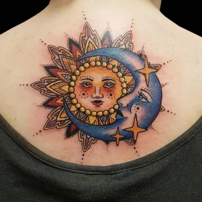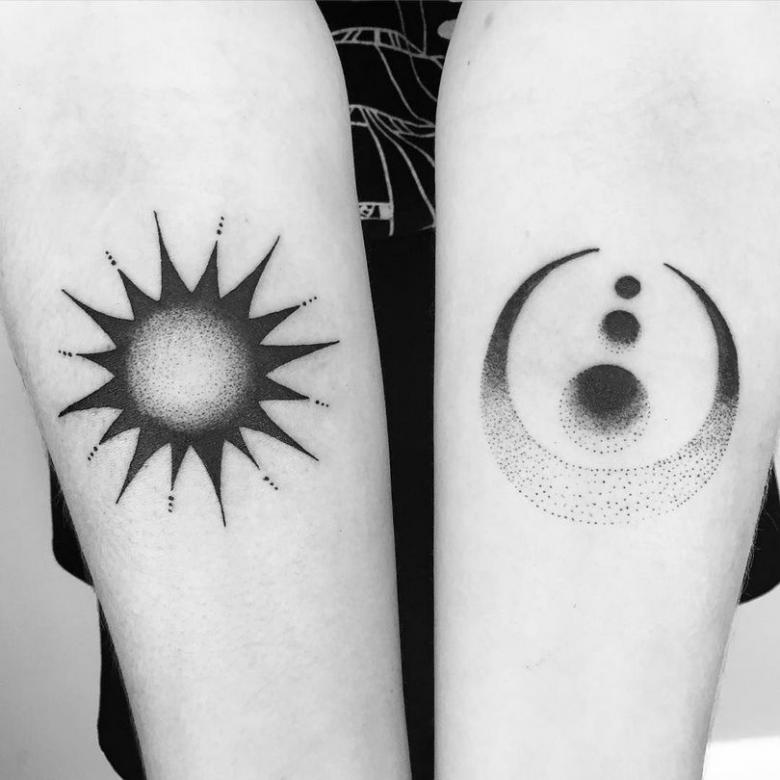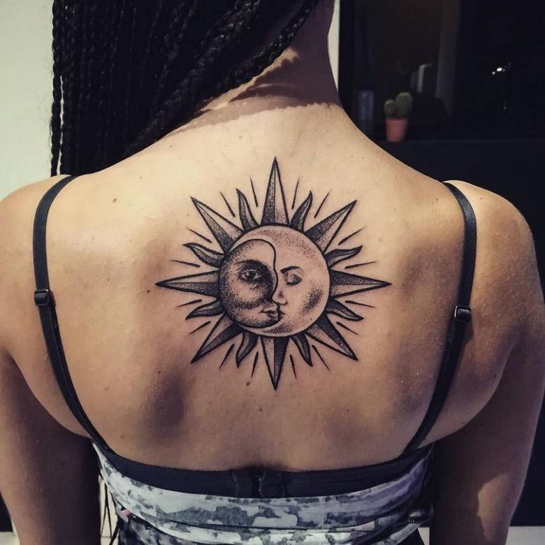 Il est peu probable que quelqu'un utilise délibérément les significations sous-jacentes des signes du soleil et de la lune, cependant, beaucoup cherchent à compenser ces deux débuts. Par exemple, un couple peut mettre le soleil sur le corps d'un homme et la lune sur celui d'une femme, ce qui signifierait qu'ils forment un tout unifié.