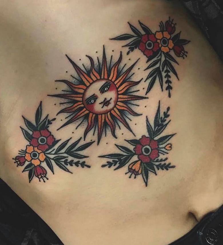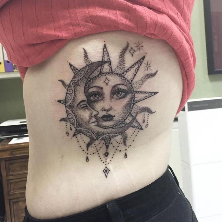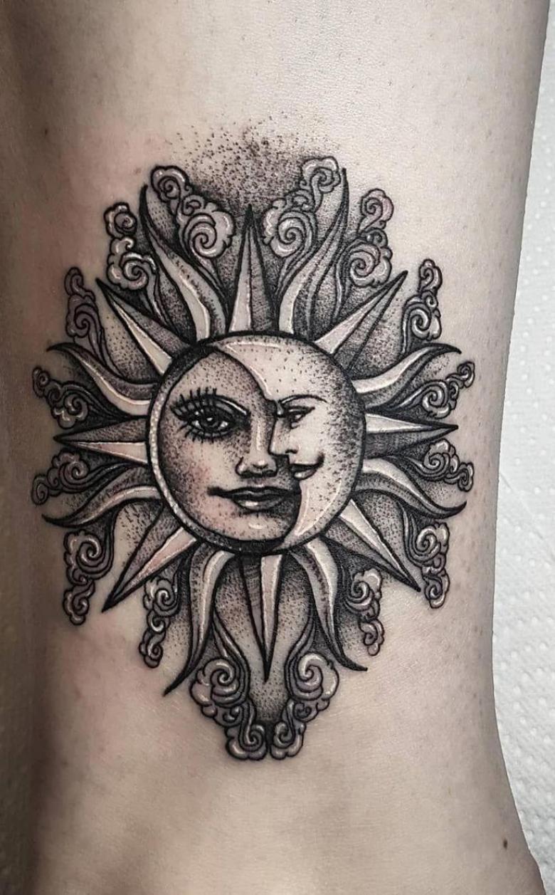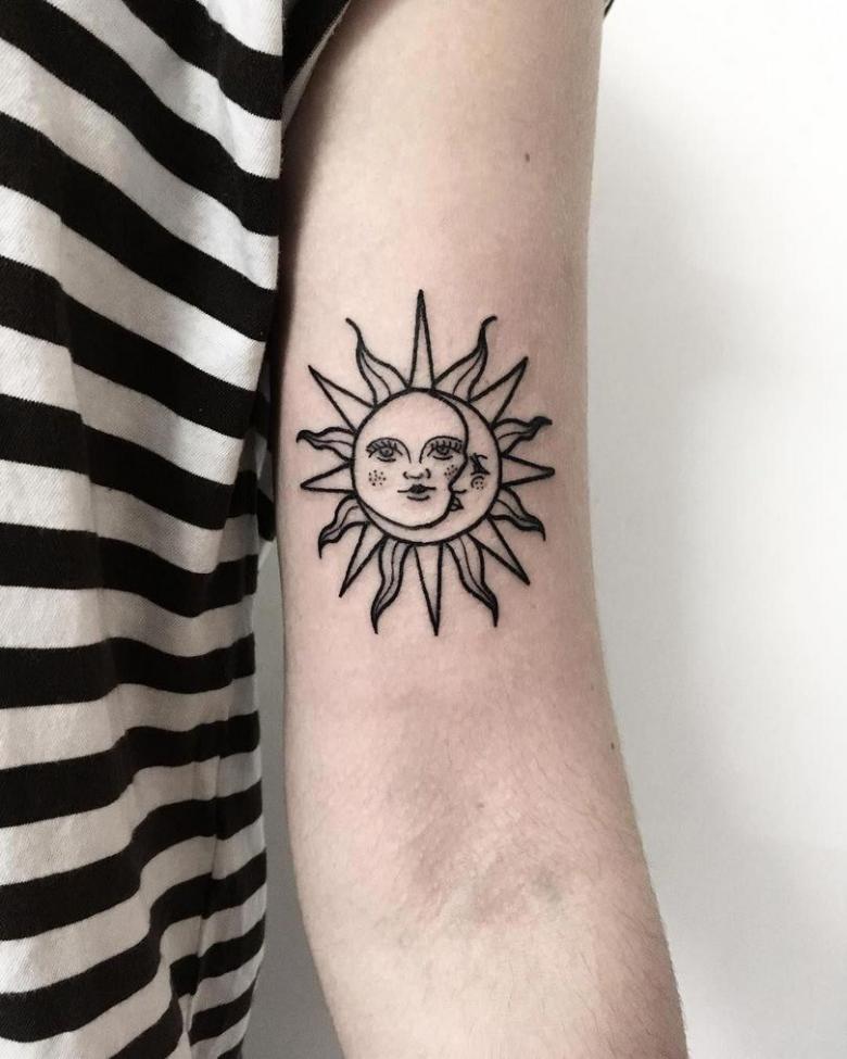 Le soleil est un thème universel pour les tatouages masculins et féminins. Évidemment, les femmes choisissent des thèmes plus sophistiqués et le style du tatouage peut être radicalement différent.