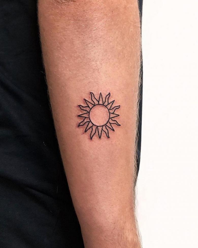 Un tatouage lumineux représentant le soleil conviendra à tout homme qui souhaite afficher sur son corps un engagement envers la vérité, la lumière et le pouvoir de la nature. Le soleil peut également être un symbole de chance, une source d'illumination et une sorte de talisman.