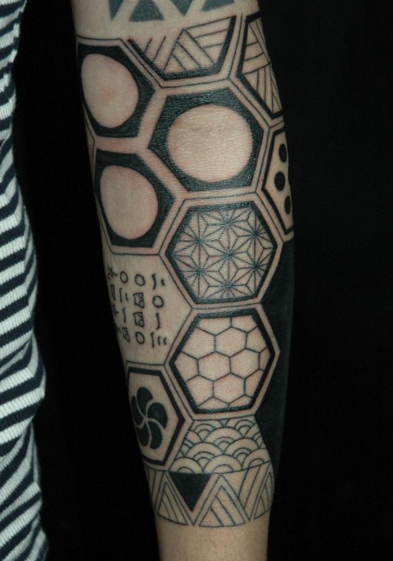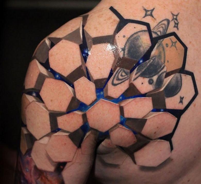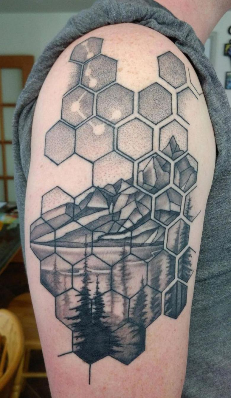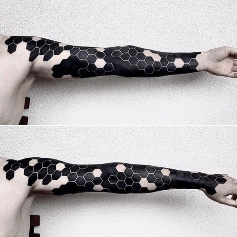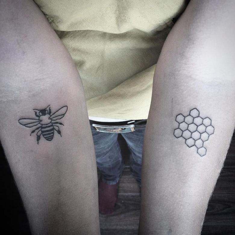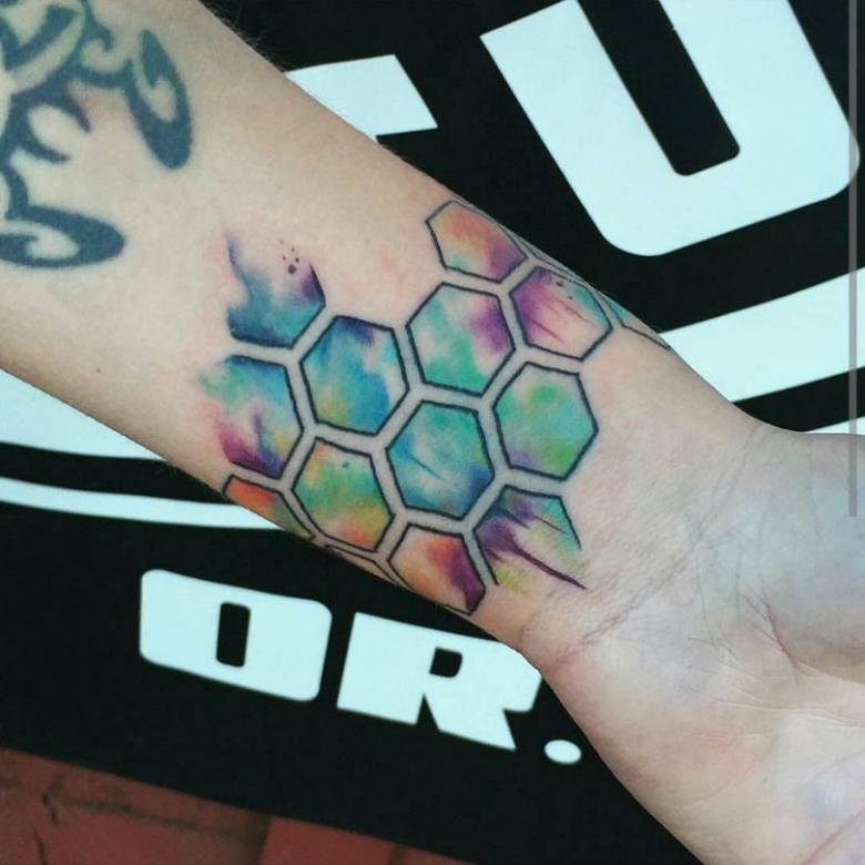 Tatouage avec nid d'abeille : signification pour les filles et les hommes, le lieu d'application (sur le bras, la manche, la jambe), croquis originaux et idées de photos