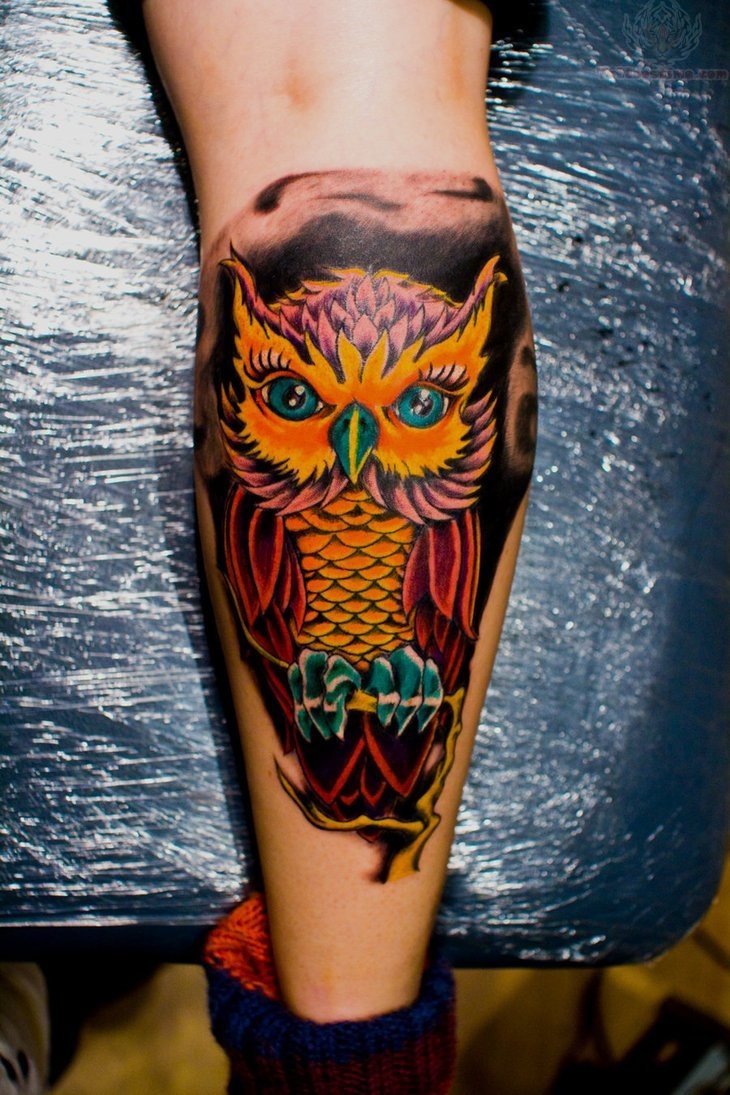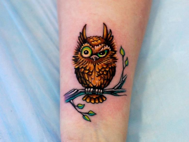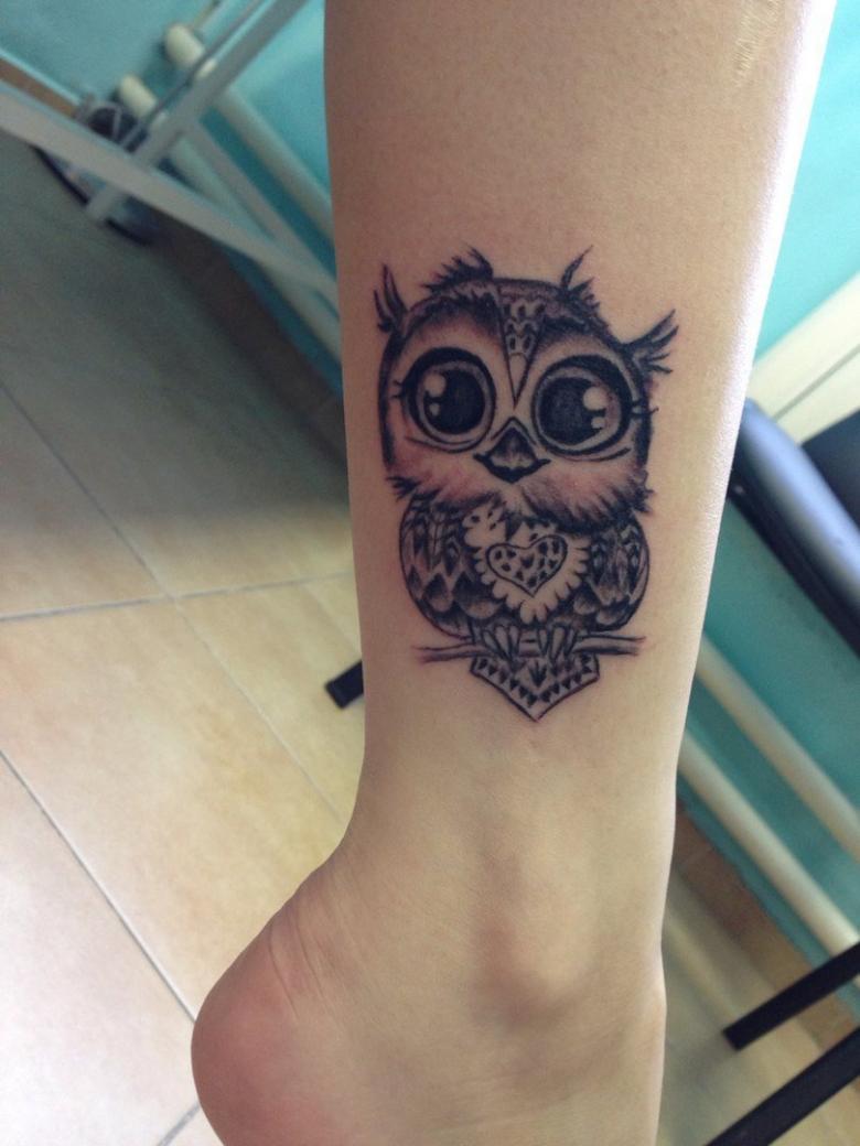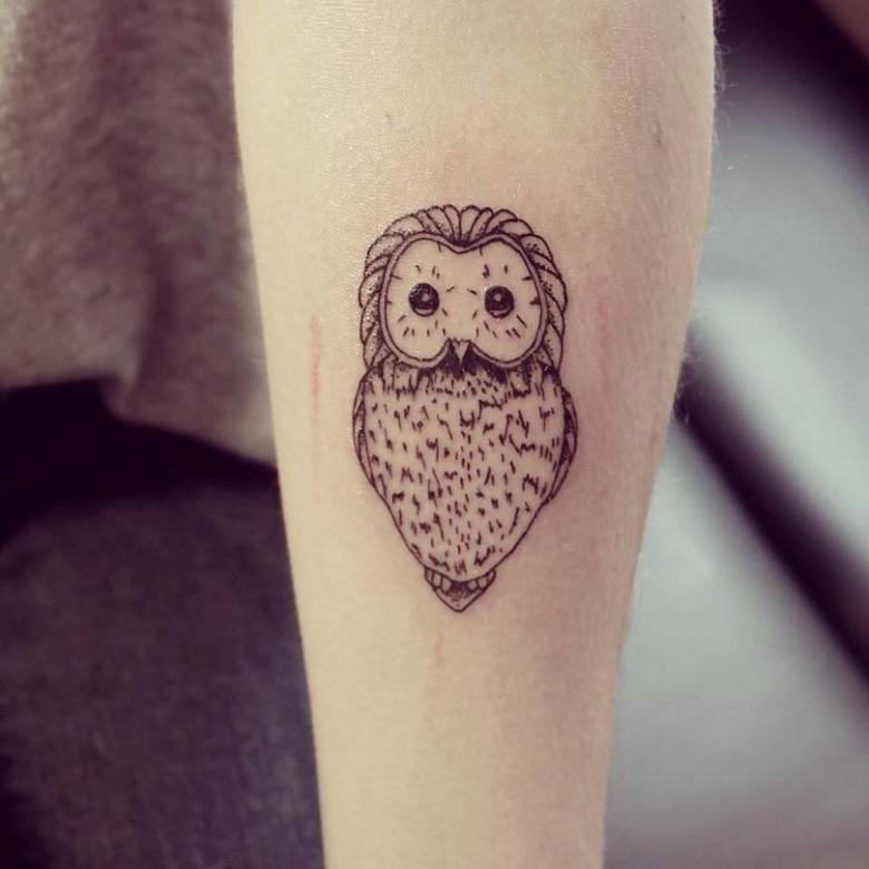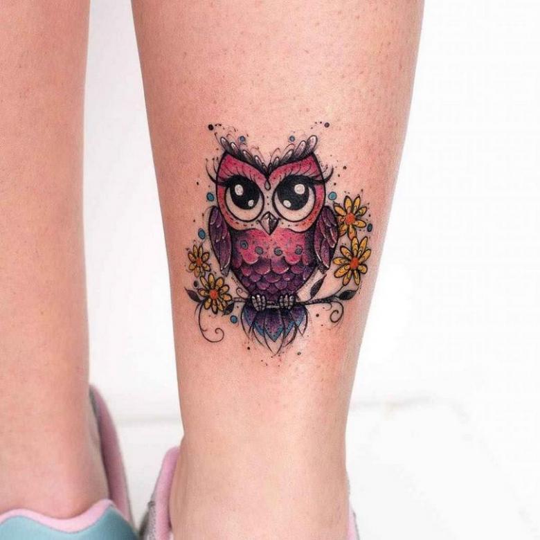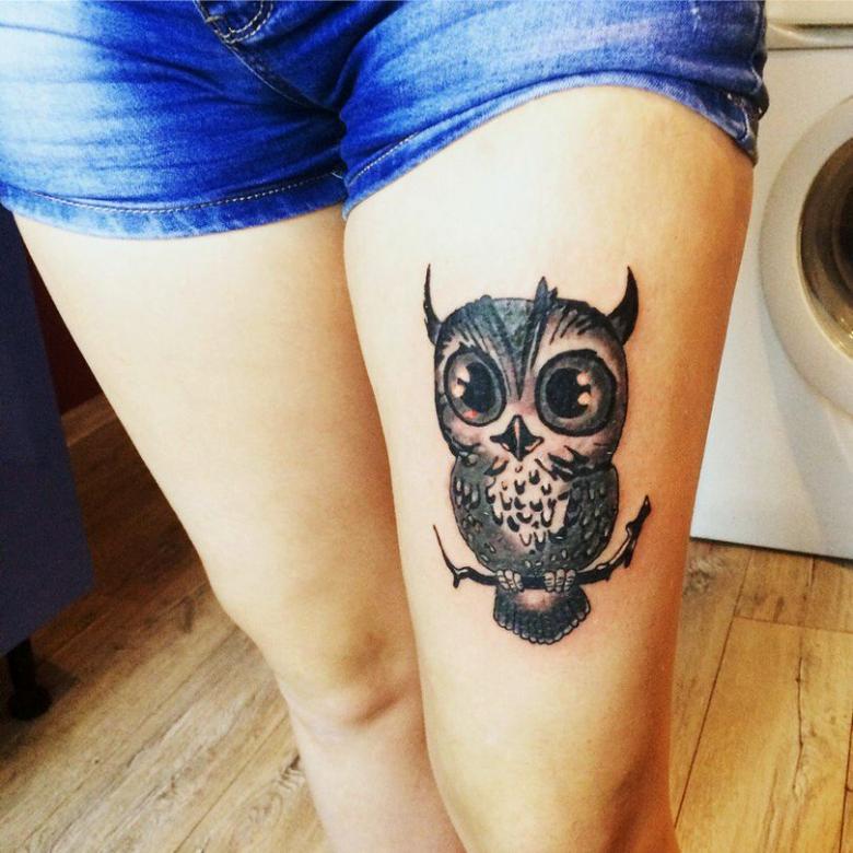 - Les filles appliquent le plus souvent le tatouage de chouette sur la hanche, mais pour les hommes caractérisés par l'image sur le tibia, le mouvement crée une illusion réaliste d'un vol d'oiseau nocturne ;