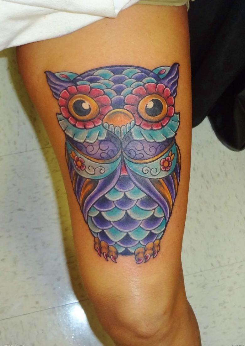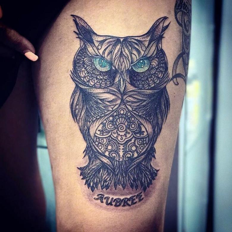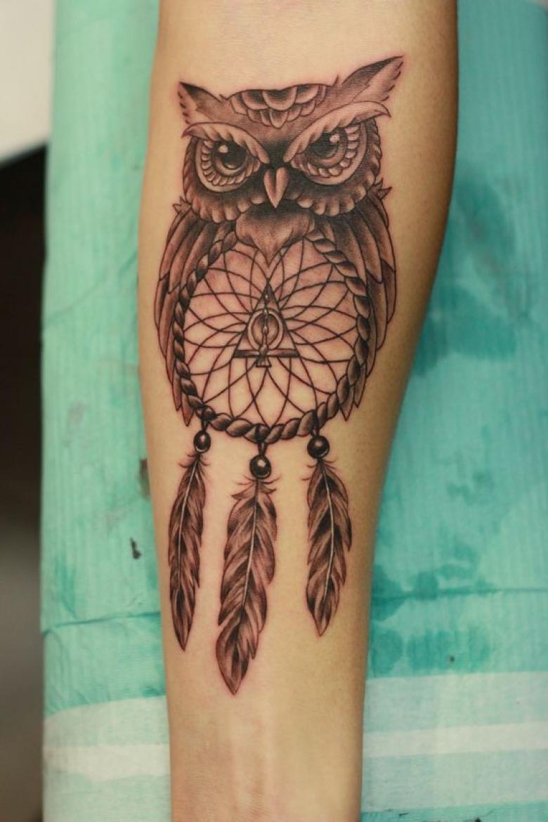 Dans certaines tribus indiennes, le hibou était choisi comme animal totem et les plumes des oiseaux étaient considérées comme les amulettes les plus puissantes. Les Indiens croyaient que si vous demandez à un hibou sage, il protégera votre âme dans le monde souterrain. Les tatouages modernes représentés sur la photo peuvent avoir des significations différentes :