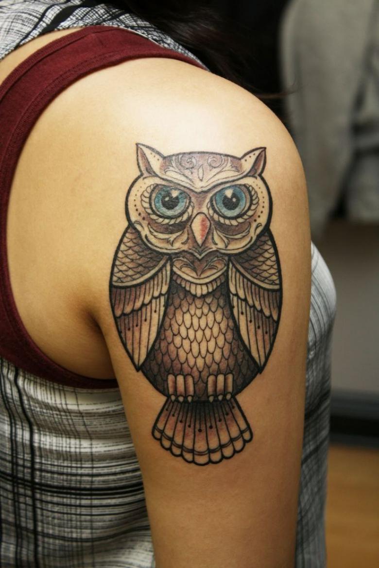 Dans les traditions de nombreuses nations et cultures, on attribue aux chouettes des traits mystiques que le porteur du tatouage peut posséder.