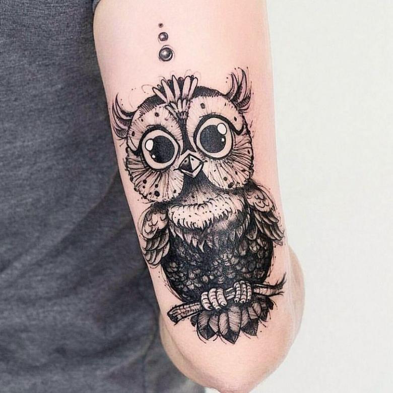 Souvent, dans les contes et légendes anciens, les hiboux sont devenus les compagnons éternels de puissants magiciens et de puissantes sorcières, ce qui joue également un rôle dans le choix d'une image pour le tatouage.