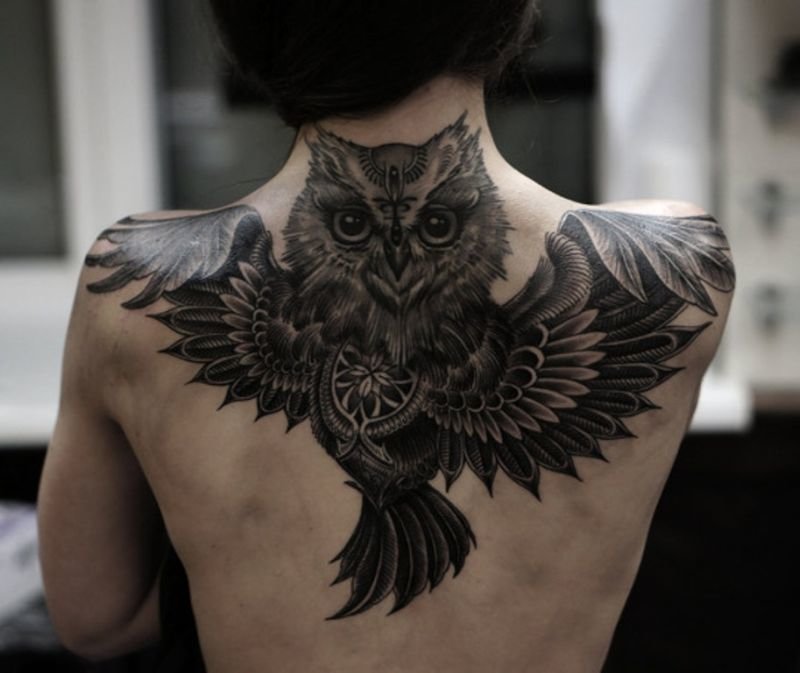 - Les grandes images d'une chouette en vol sont les mieux adaptées au dos, et les ailes déployées de l'oiseau donneront l'illusion d'ailes au porteur du tatouage ;