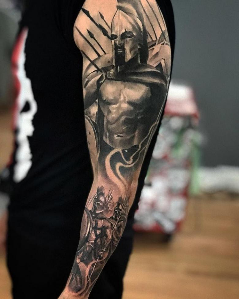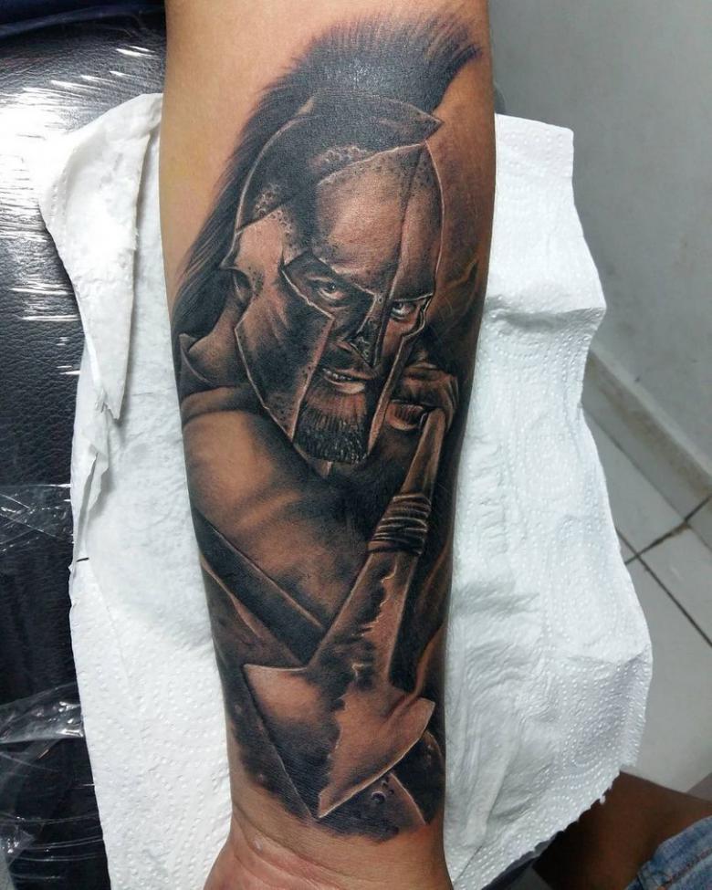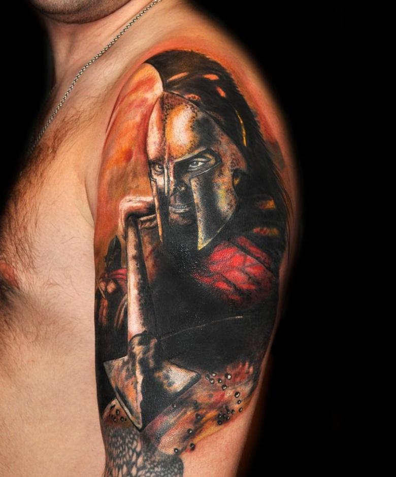 Après le film "300 Spartiates", il est devenu à la mode de faire des tatouages représentant ces courageux guerriers. Bien sûr, des tatouages similaires ont déjà été réalisés auparavant, mais le film a attiré l'attention de nombreuses personnes sur le sujet des vrais guerriers.