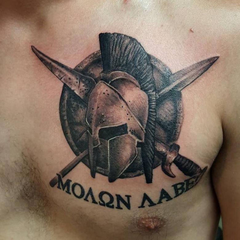 Le Spartiate symbolise l'homme en tant que protecteur, capable de protéger sa femme, sa mère et sa sœur des difficultés de la vie. Ils disent : "Derrière lui - comme un mur de pierre. Un homme qui choisit un tatouage spartiate en tenue de combat, calme et verbeux, inspire le calme à tous ceux qui sont proches et sous sa protection. Il préfère agir plutôt que de parler.