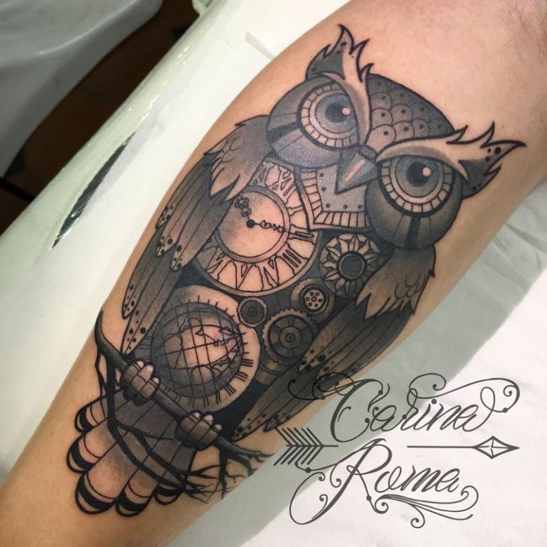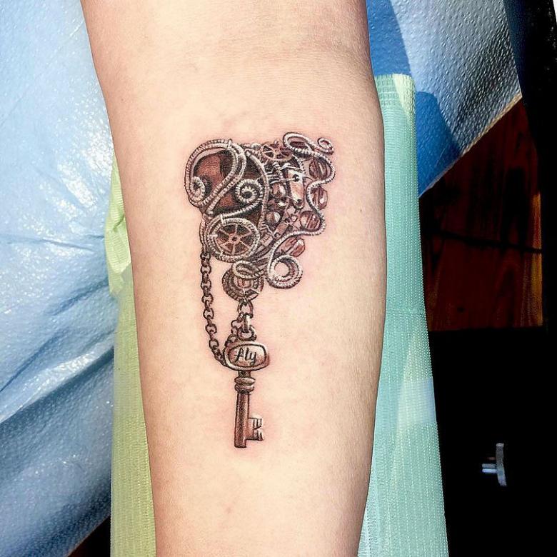 Pour faire un tatouage steampunk, vous n'avez pas besoin d'être un adepte du style. Visuellement, il est attrayant pour beaucoup. La romantisation des mécanismes est spectaculaire dans les tatouages.