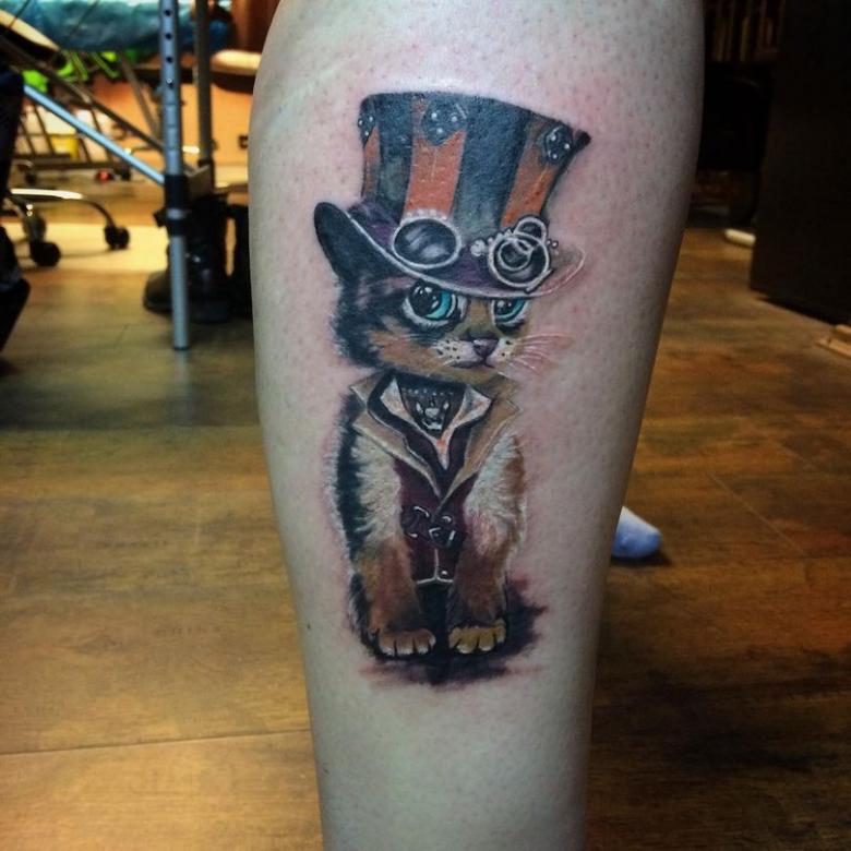 Si un maître expérimenté dans un salon de tatouage travaille sur l'anatomie, le réalisme du "cyborg victorien" est hors du commun : de l'extérieur, on dirait qu'une personne a vraiment une prothèse vintage au lieu d'une partie de son corps. Même sur la photo, sans mouvement, il est superbe.
