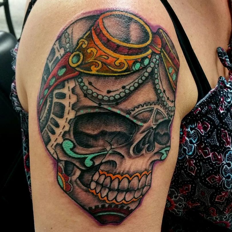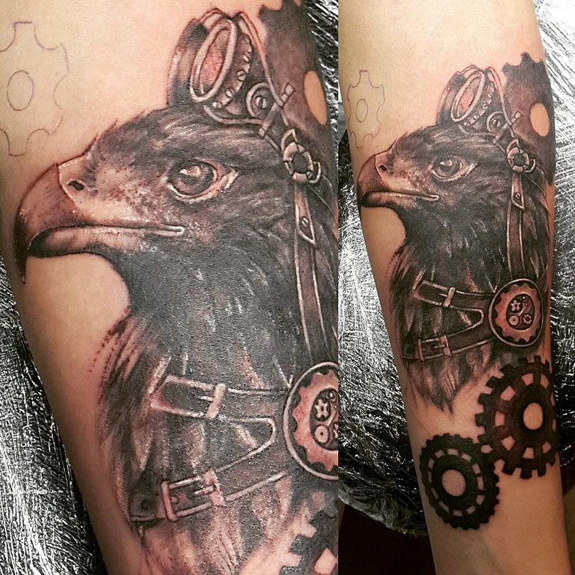 La trame du motif n'est pas limitée aux frontières d'un style donné. Ajoutez au sujet du tatouage les caractéristiques du steampunk et obtenez un résultat spectaculaire :