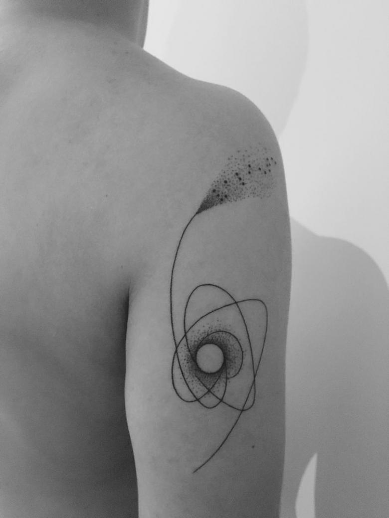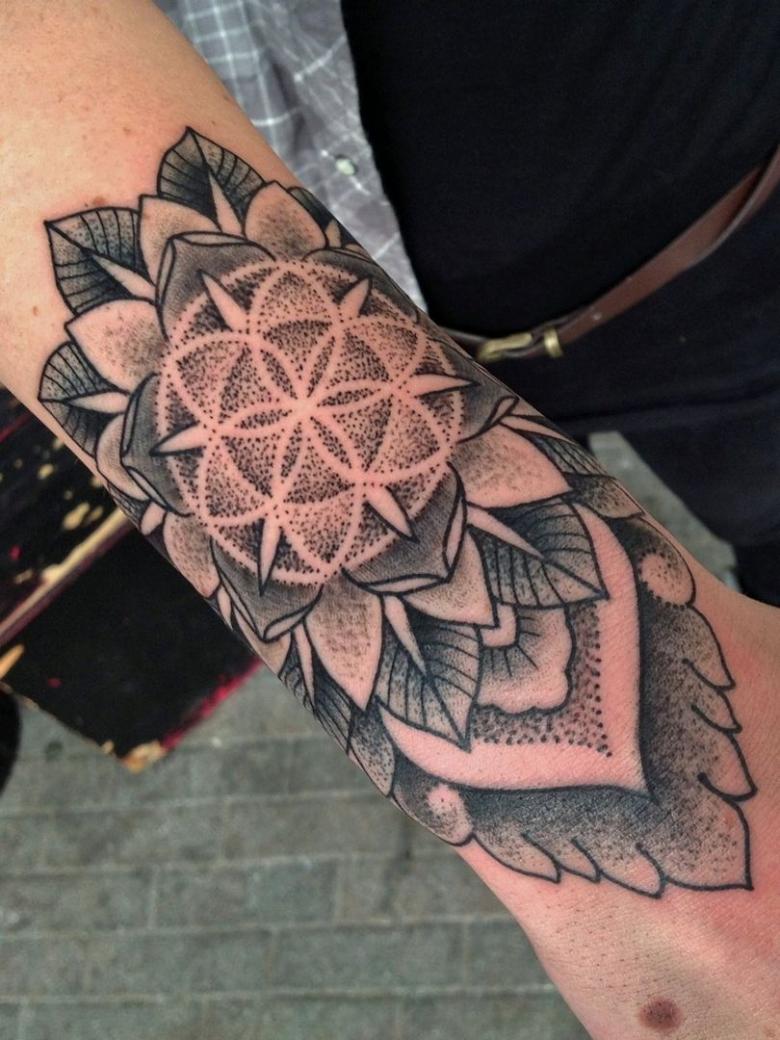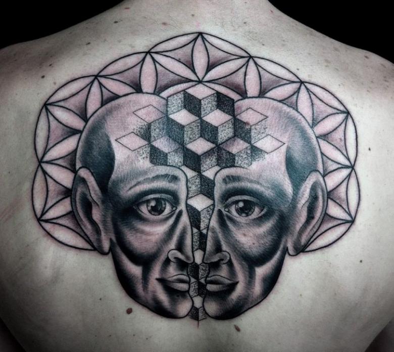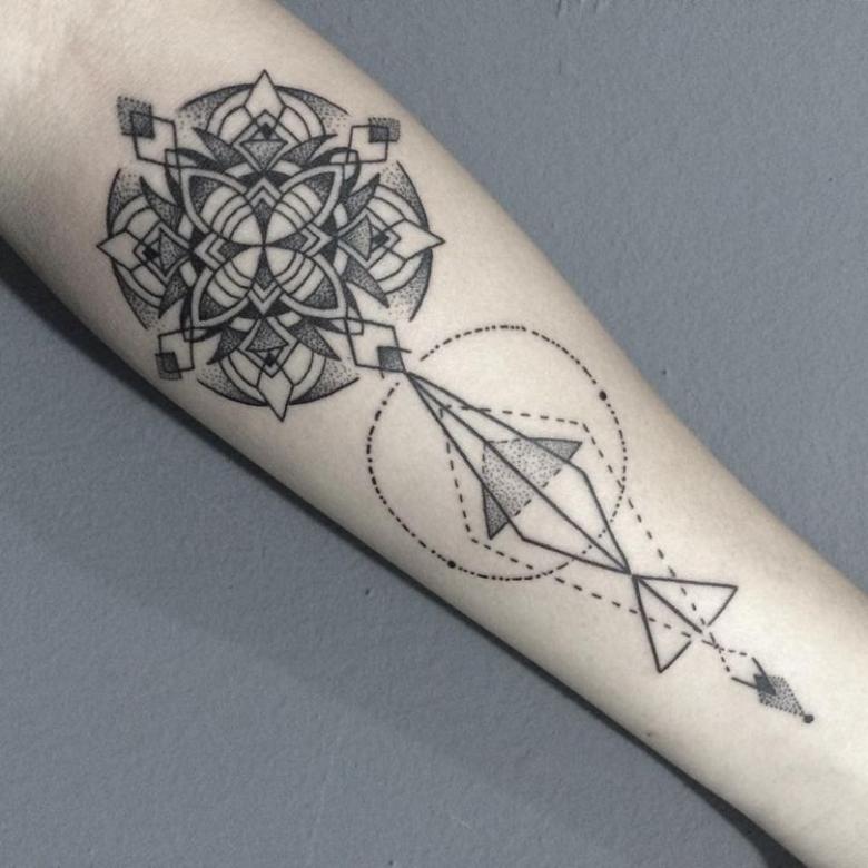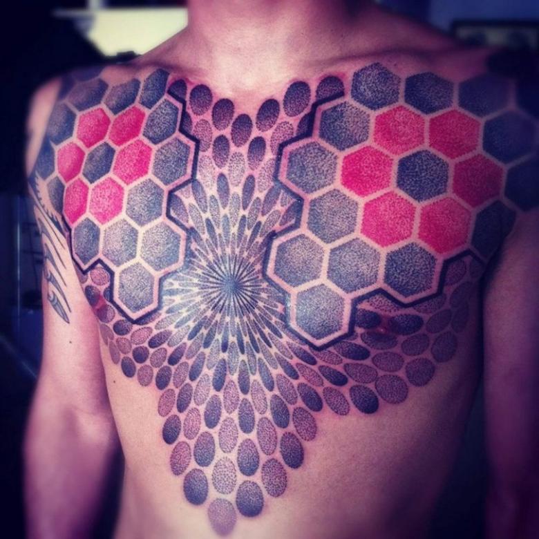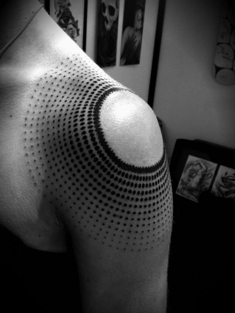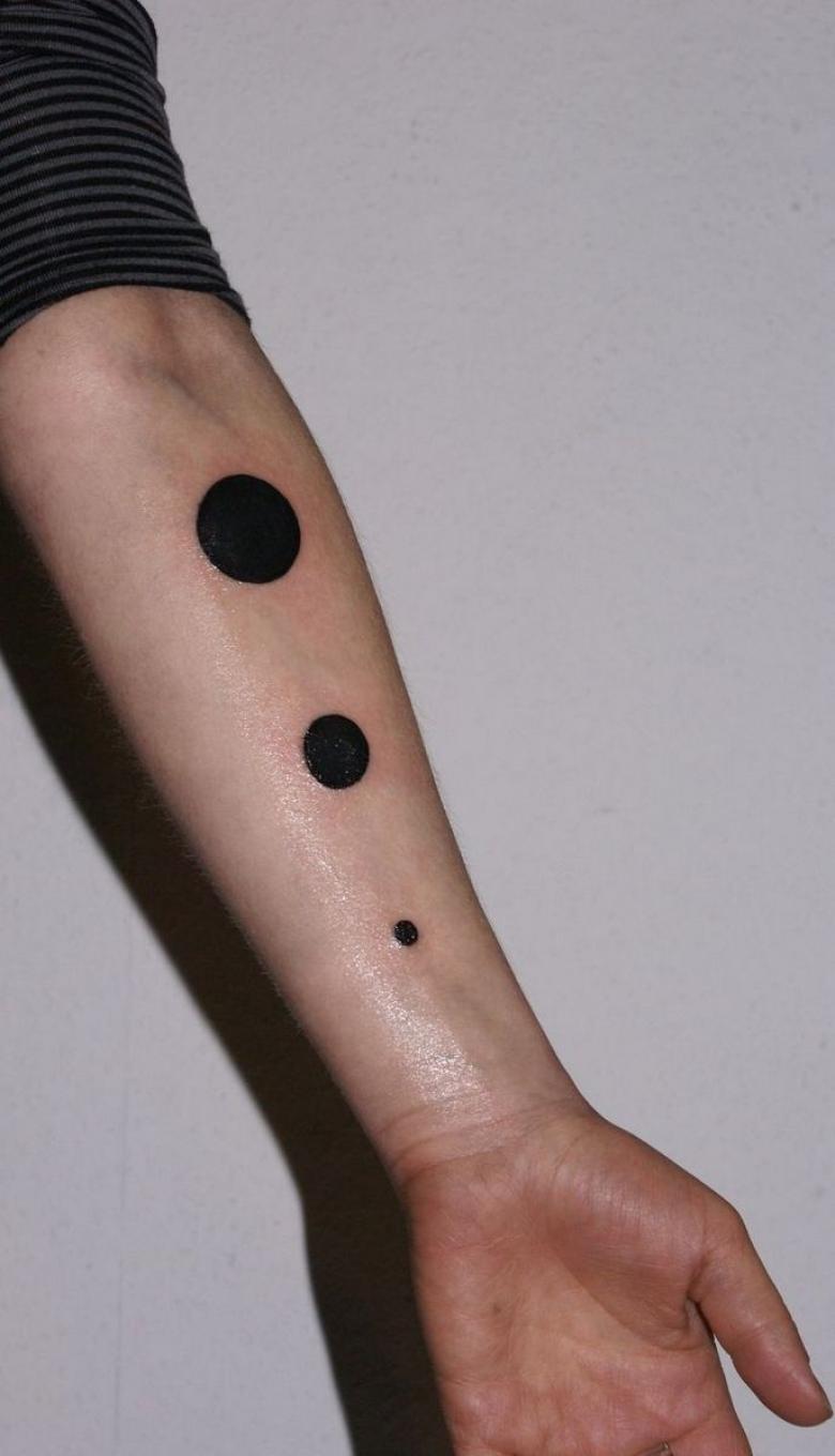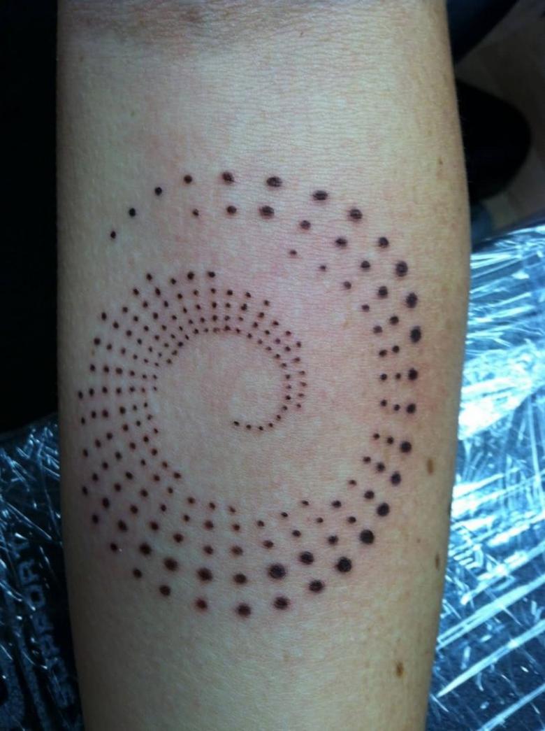 Une nuance intéressante des dessins Dotwork est qu'ils peuvent être regardés sous différents angles. L'image peut être modifiée plusieurs fois. Les tatouages à pois et à chiffres sont également combinés. En combinant les points dans l'ordre, on peut voir une image (semblable au puzzle d'un enfant).