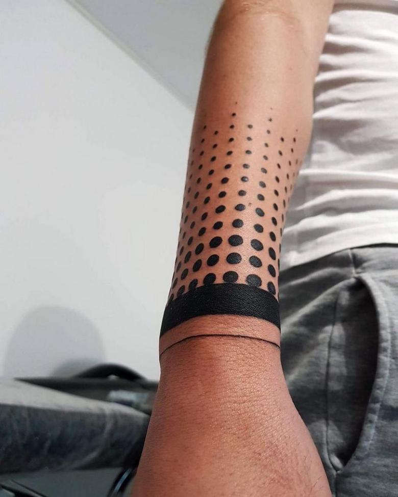 Pour les hommes, le tatouage à pois est surtout le symbole d'un "gestalt" achevé, d'une sorte de projet important, de la réalisation d'un objectif. Et plus il y a de points, plus il y a de progrès en cours de route. Si des signes suffisamment importants se trouvent dans la zone du cœur, un homme a rencontré sa moitié et sera fidèle pour le reste de sa vie.