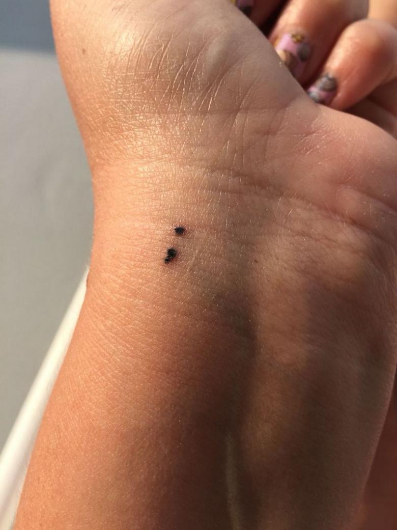 - Les points le long des veines et des artères sont des rappels de la toxicomanie, en combinaison avec les virgules, il y a des pensées et des intentions de suicide.