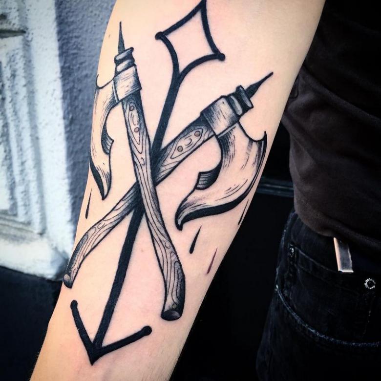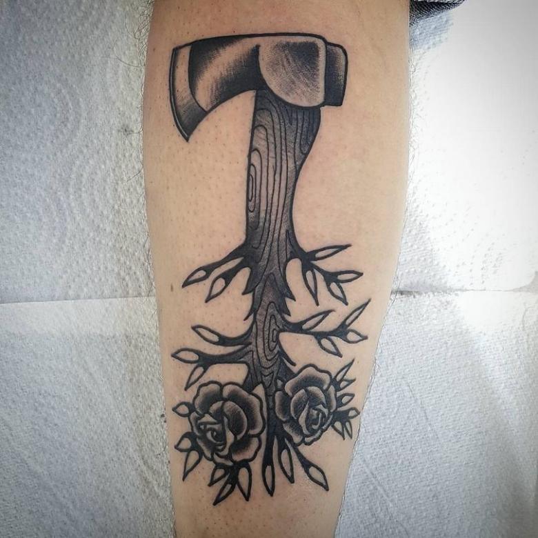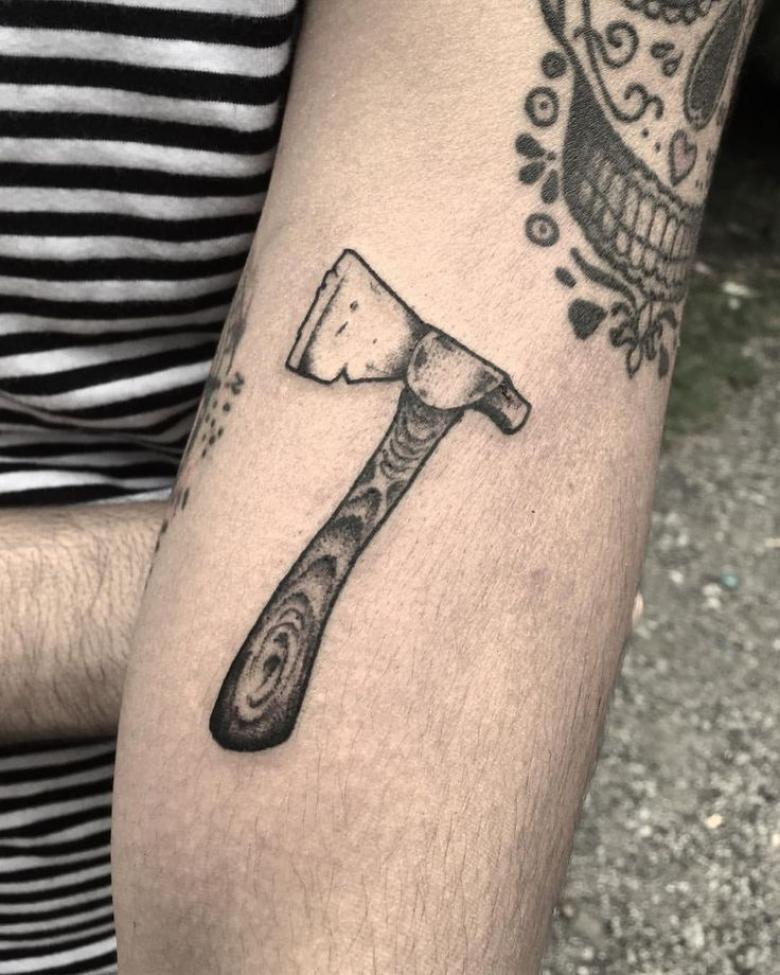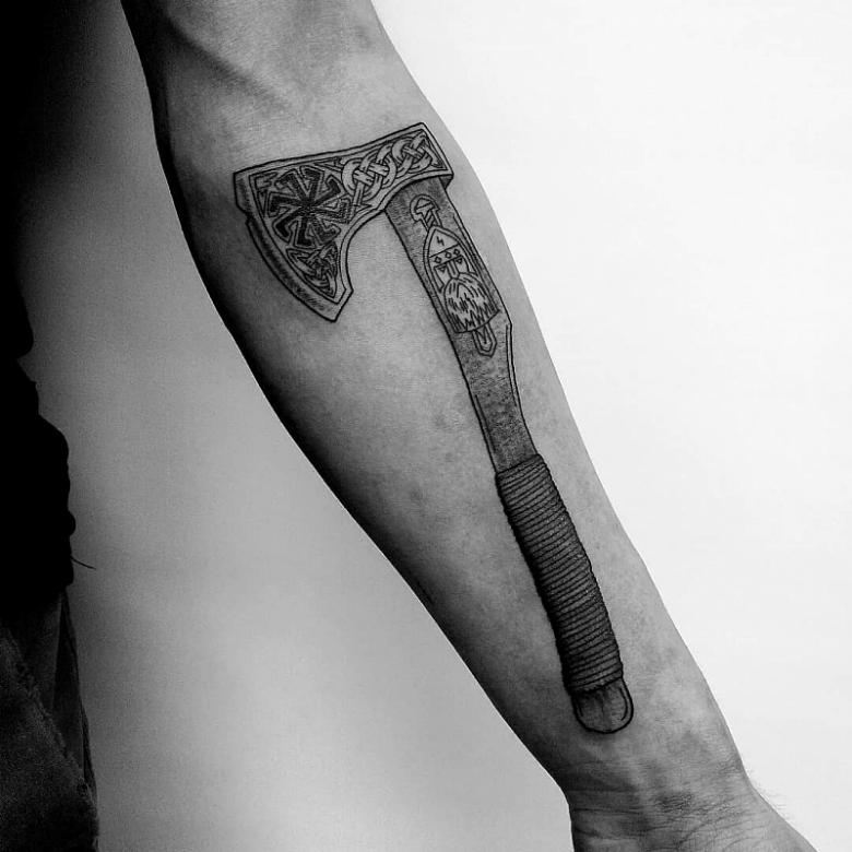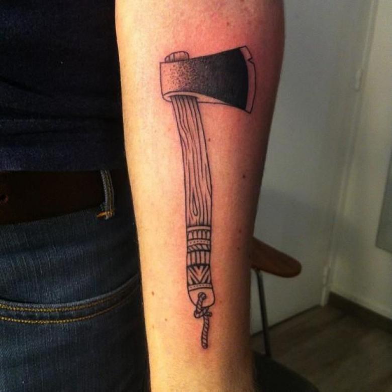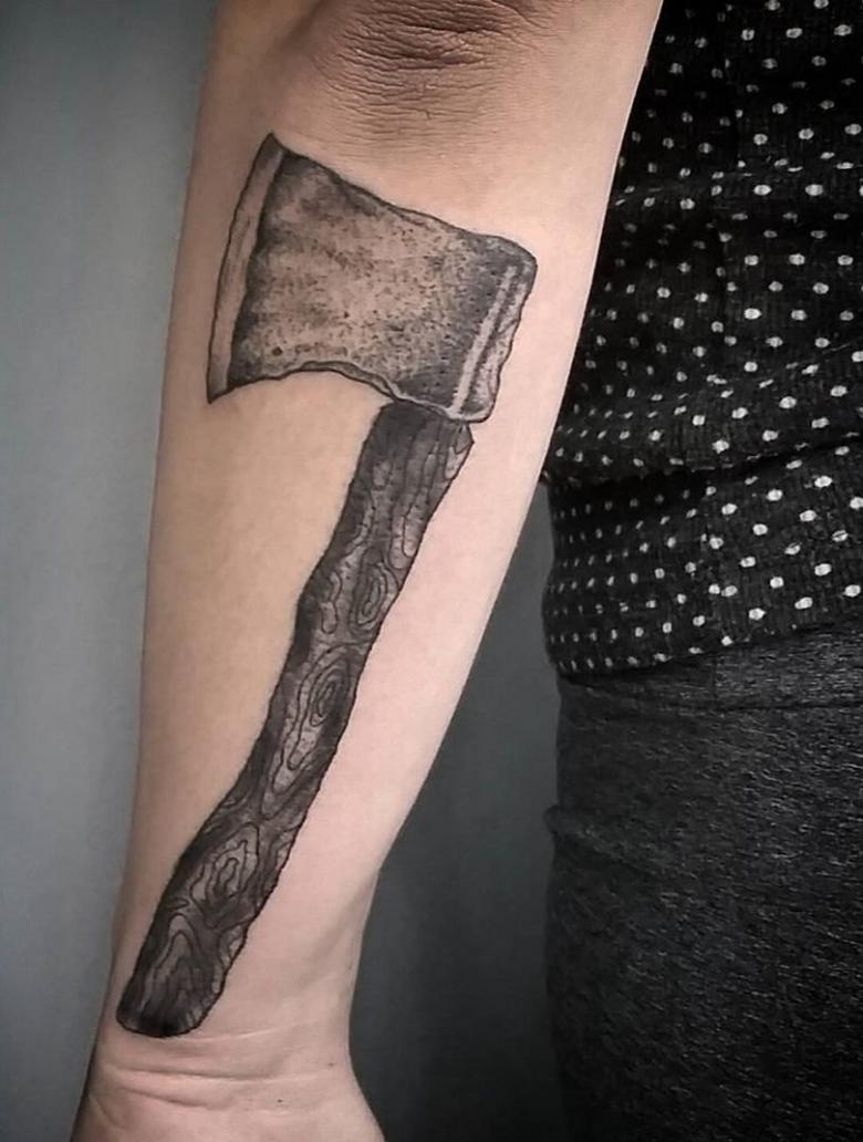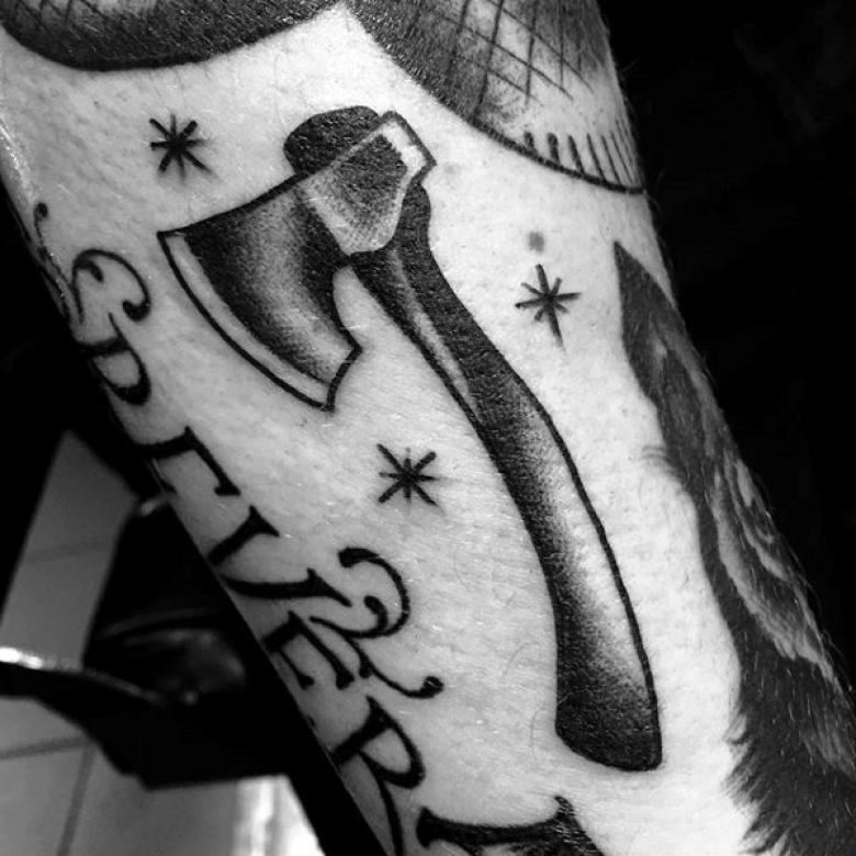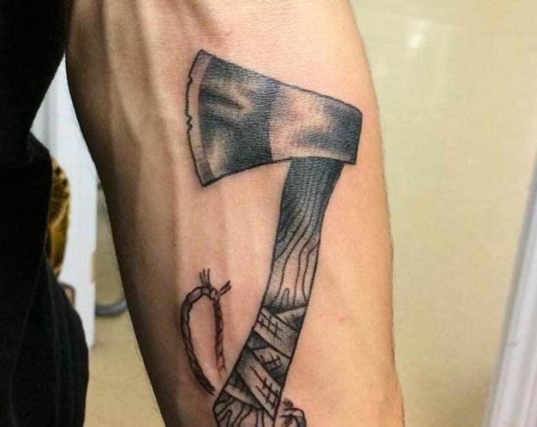 - On peut dire que la hache sur le tatouage est caractéristique des personnes courageuses et fortes.