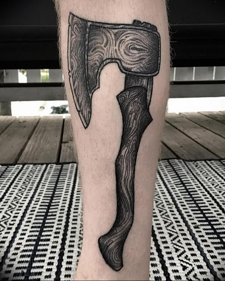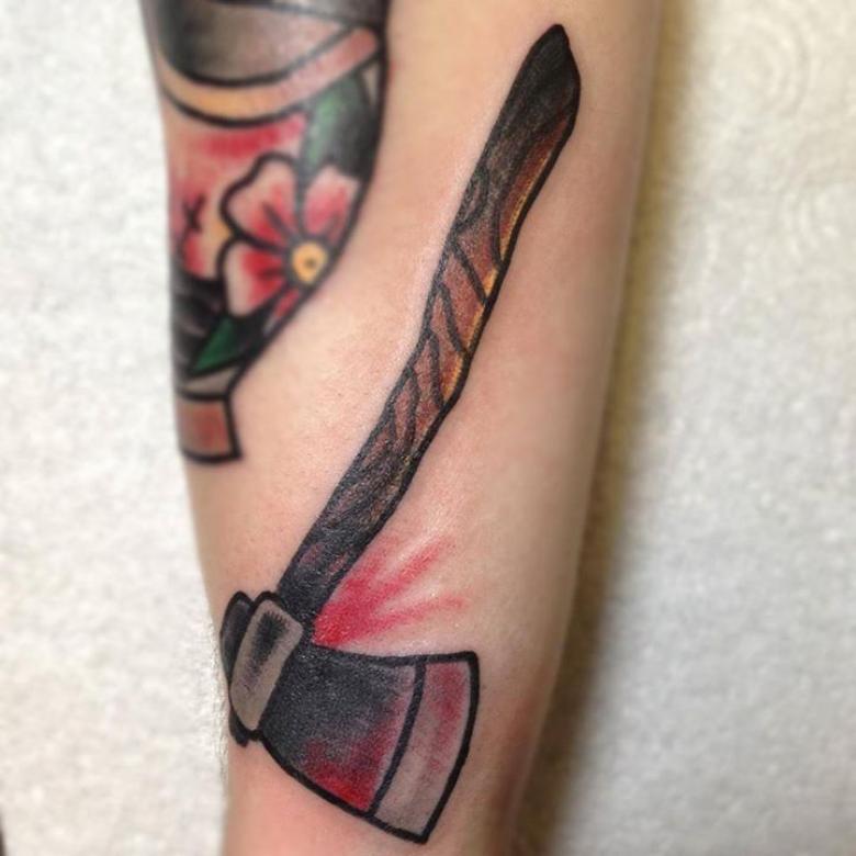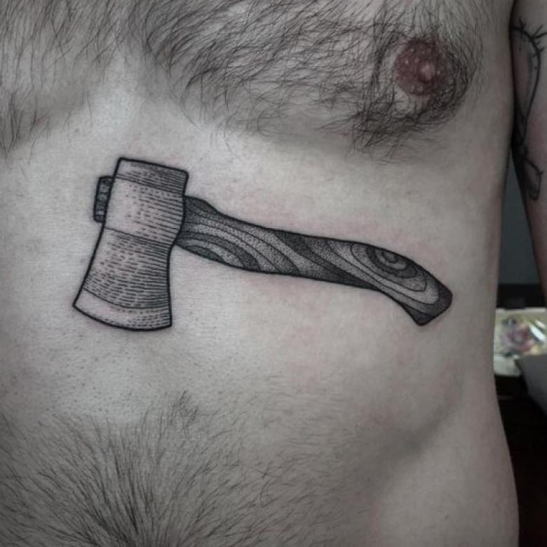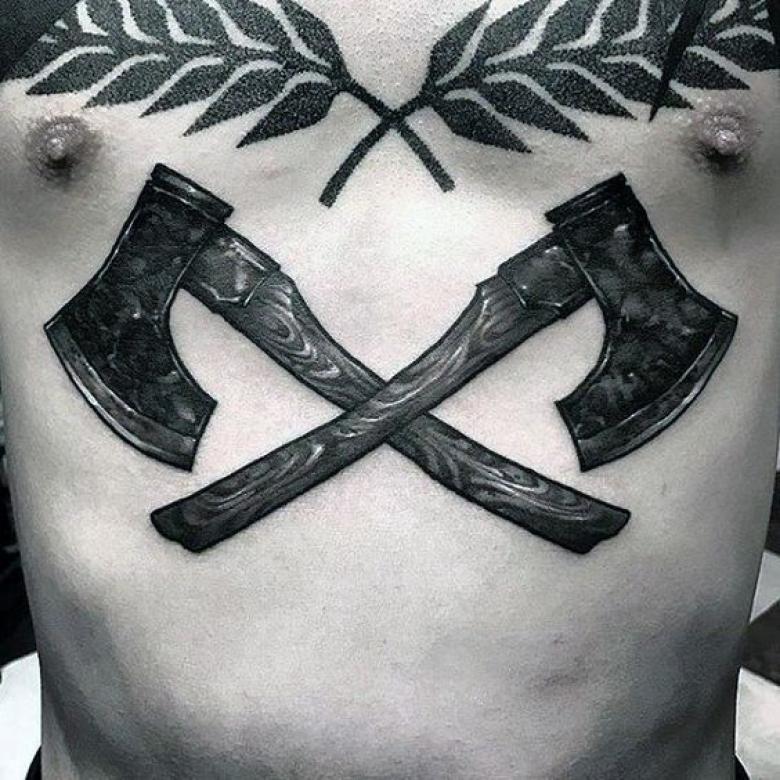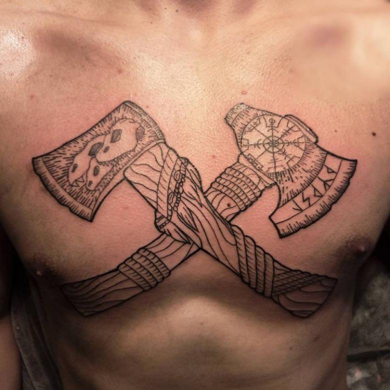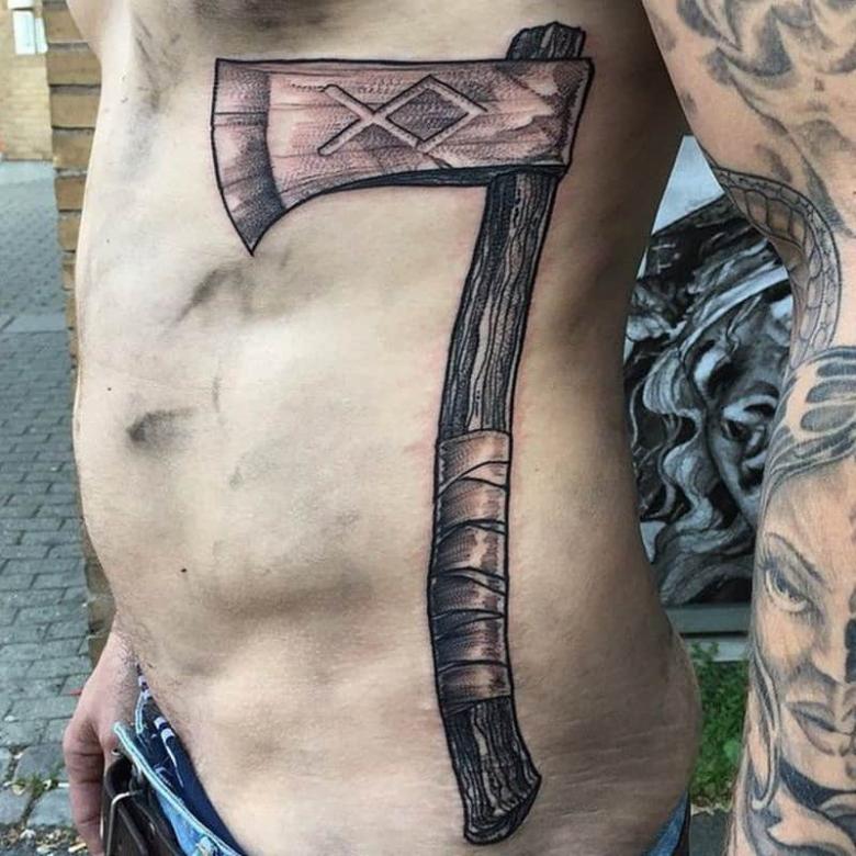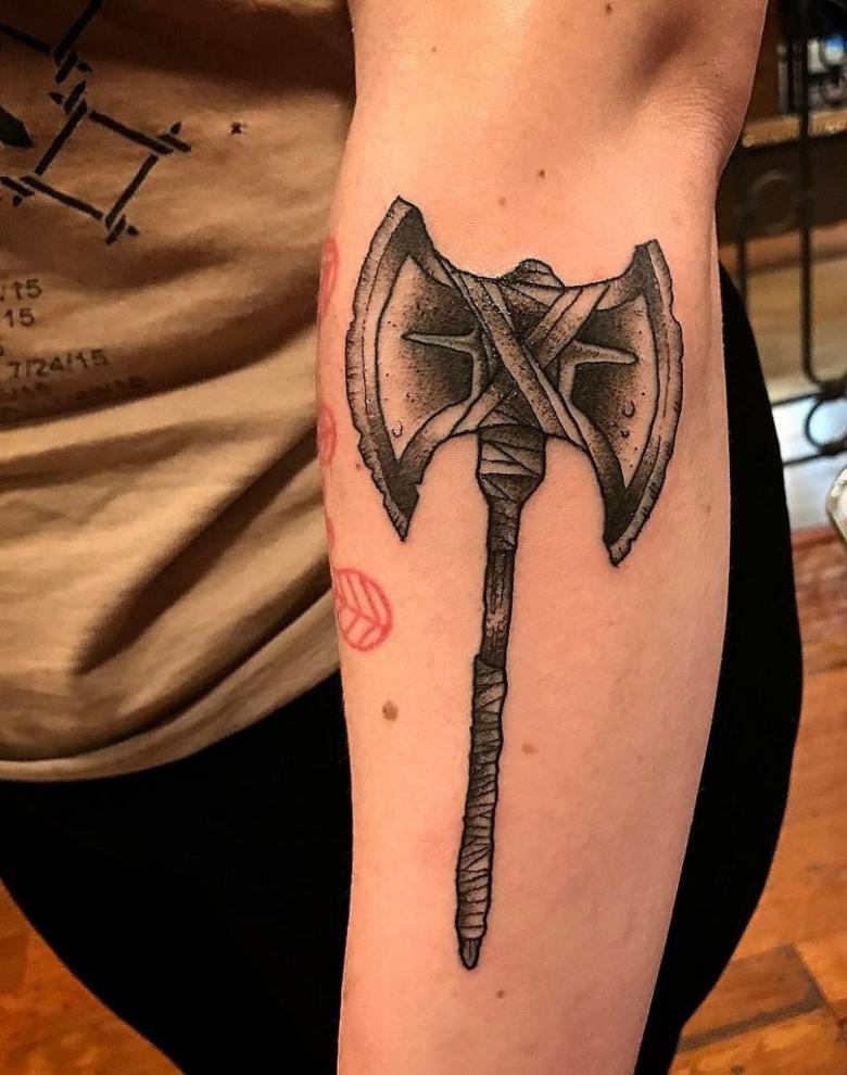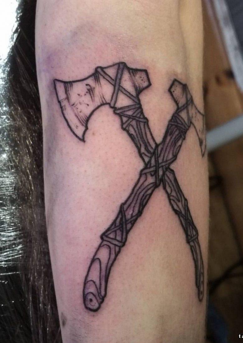 - On peut dire que la hache sur le tatouage est caractéristique des personnes courageuses et fortes.
