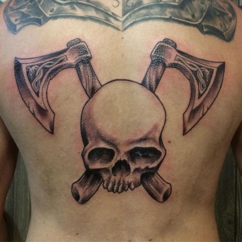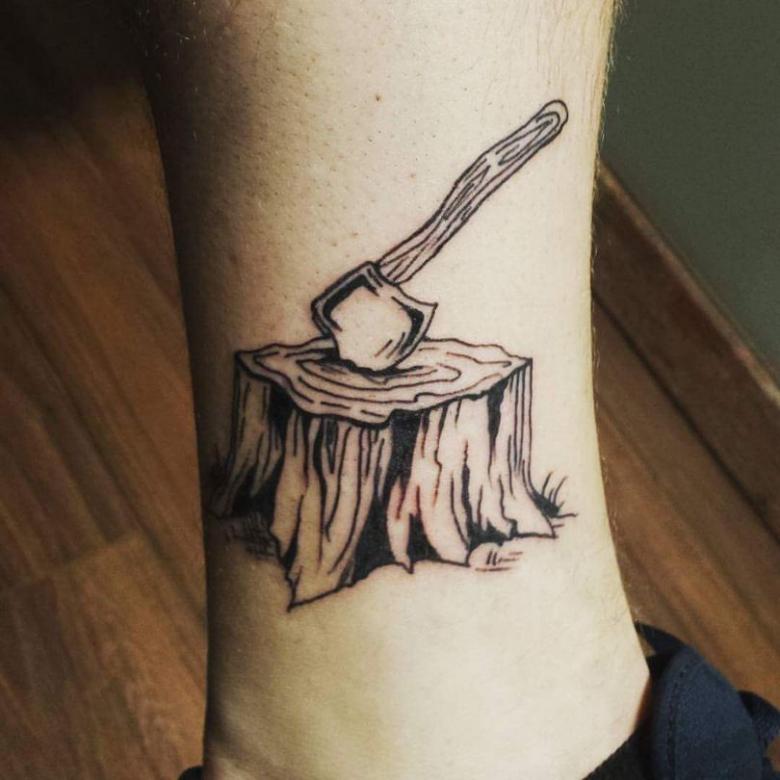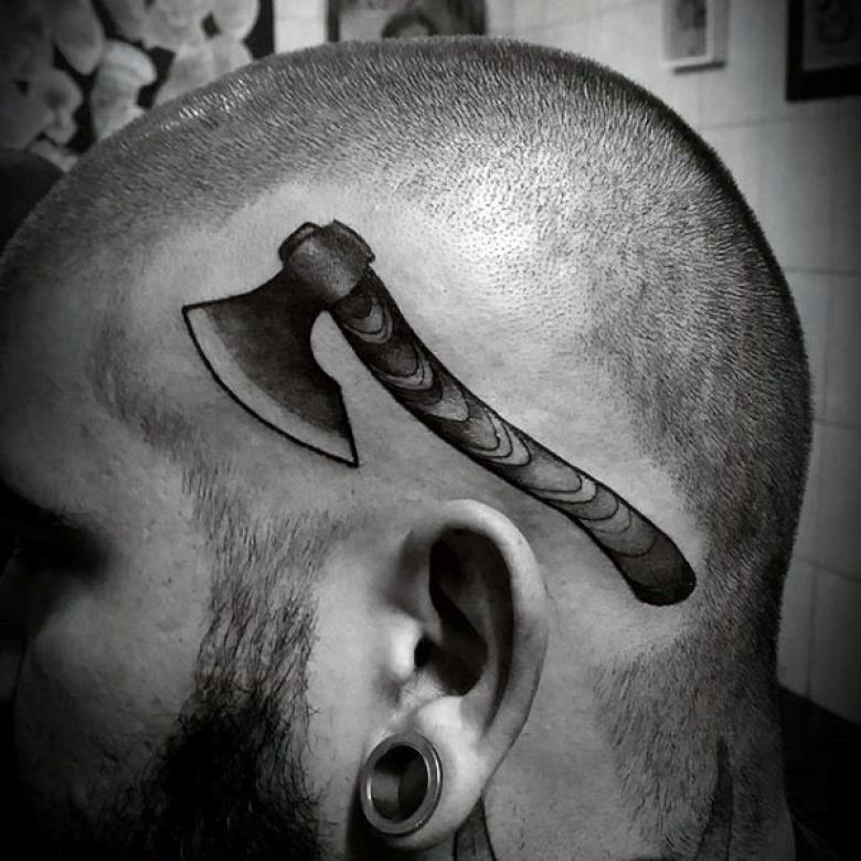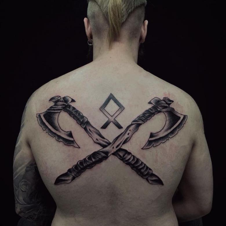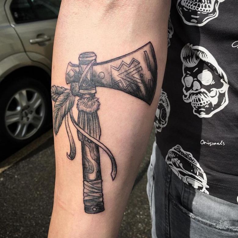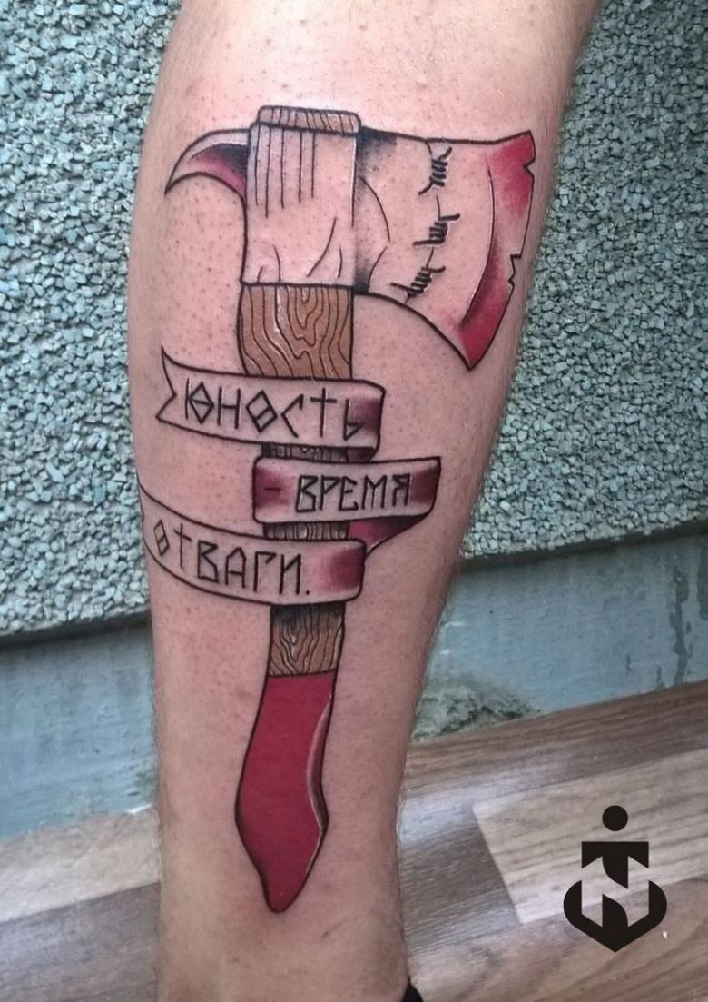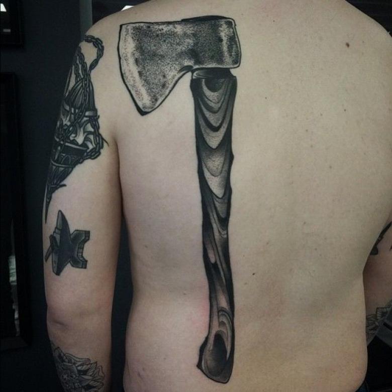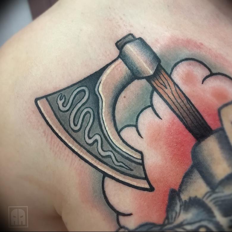 - On peut dire que la hache sur le tatouage est caractéristique des personnes courageuses et fortes.