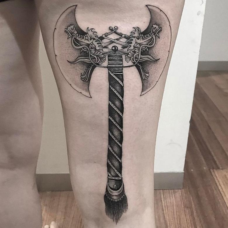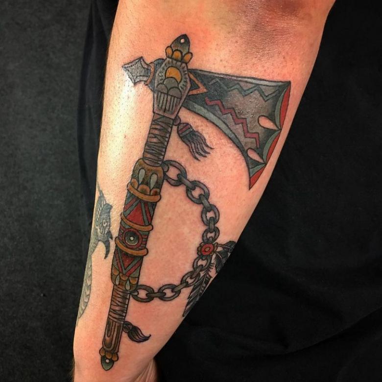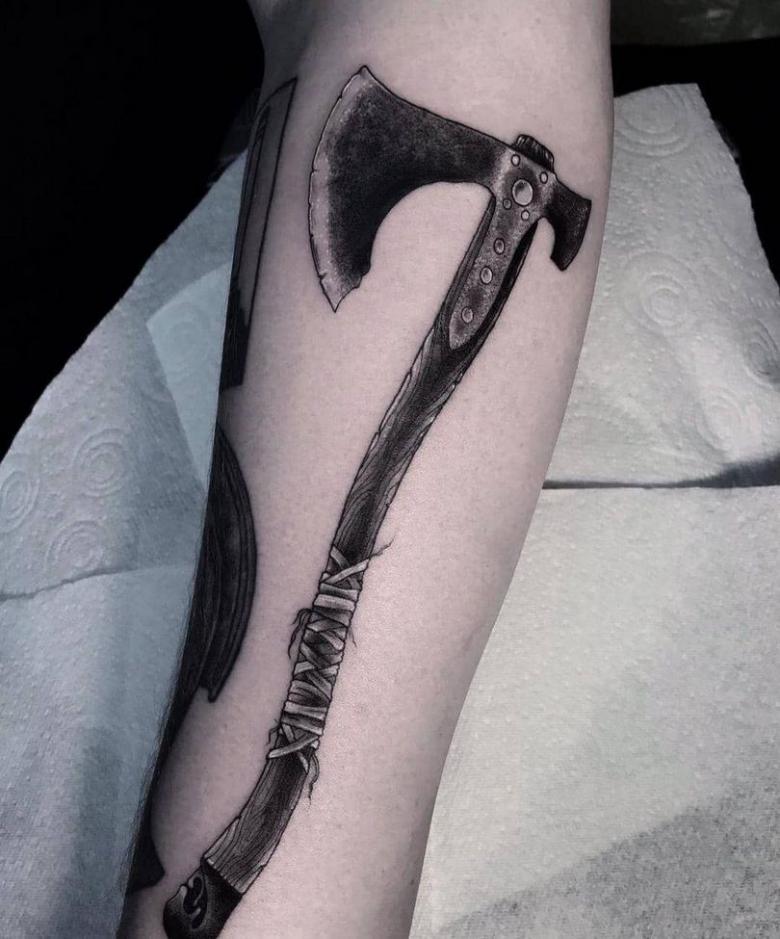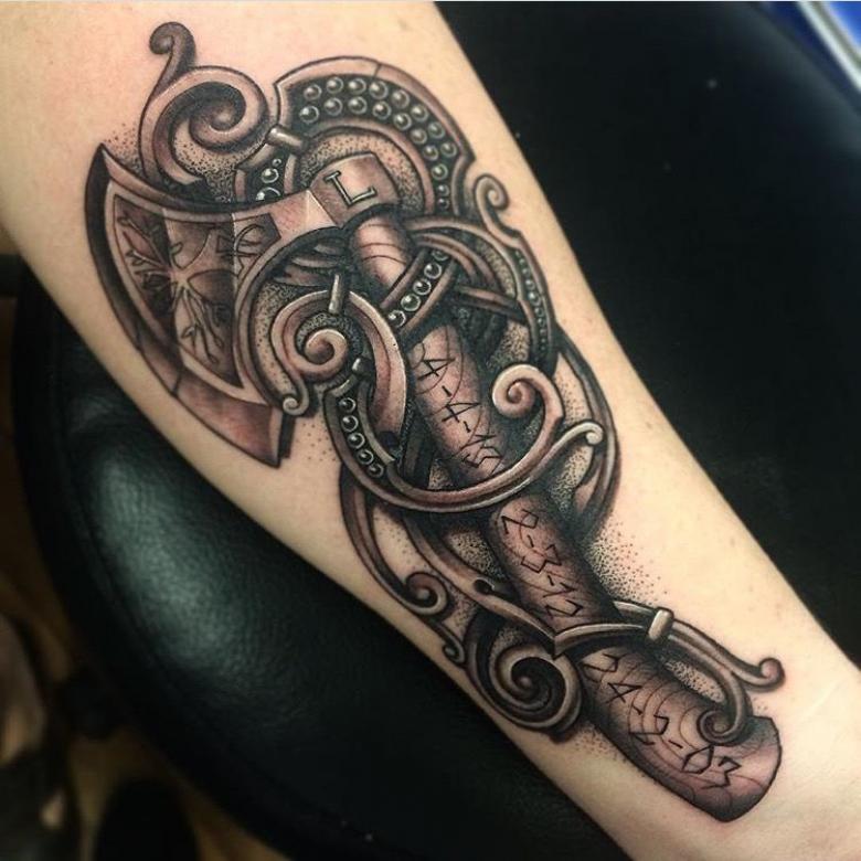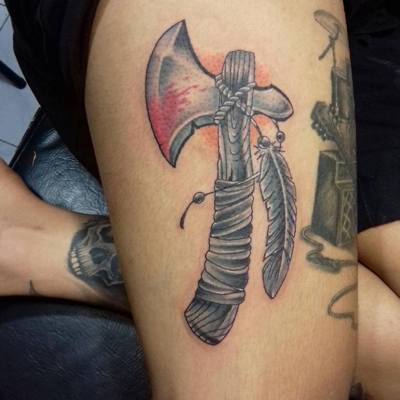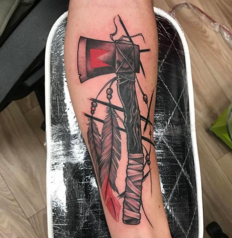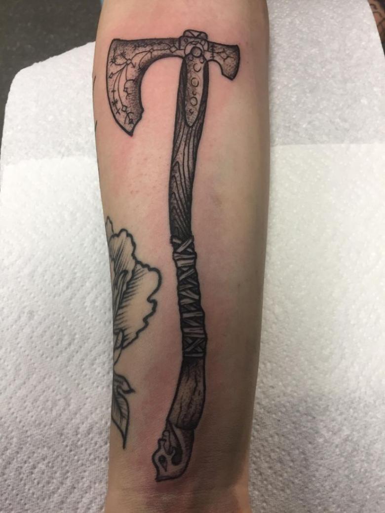 - On peut dire que la hache sur le tatouage est caractéristique des personnes courageuses et fortes.
