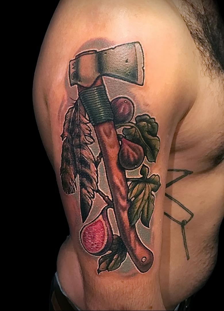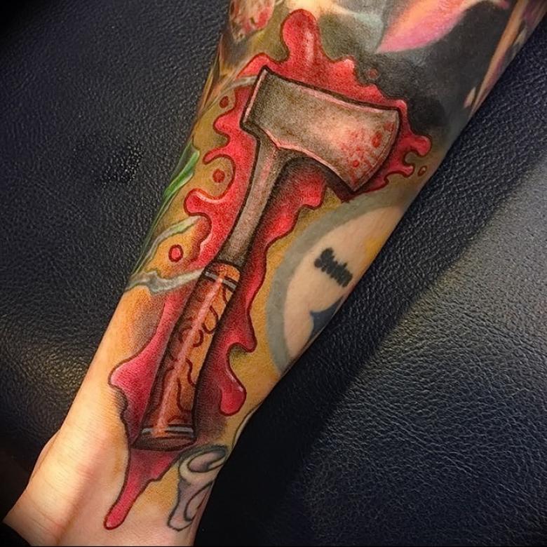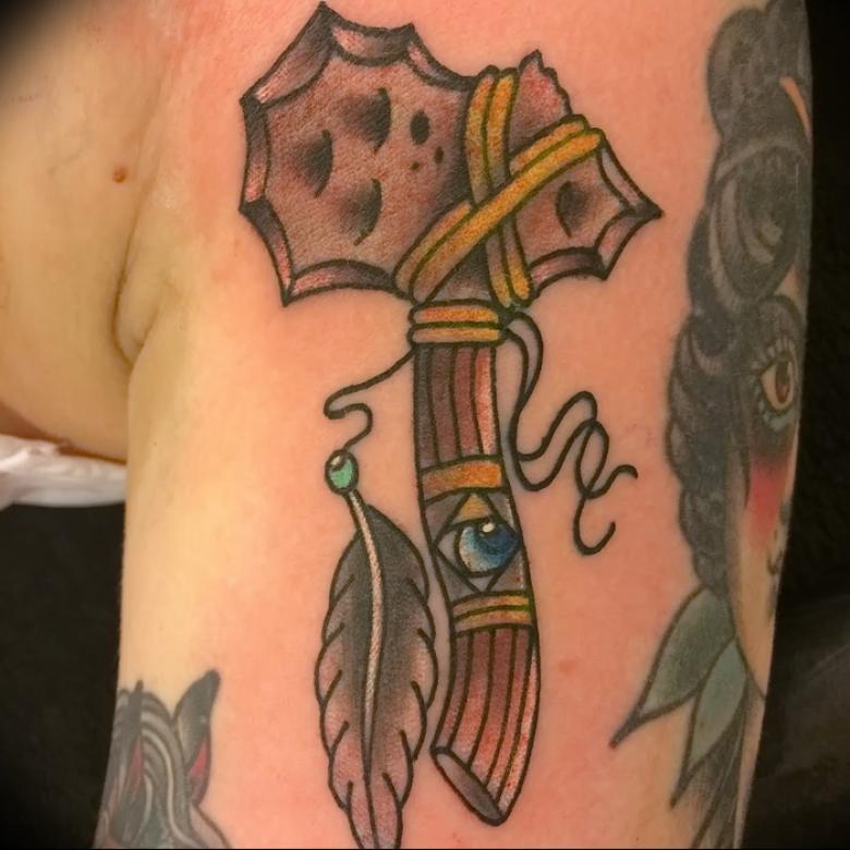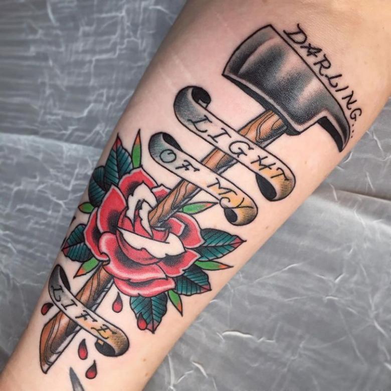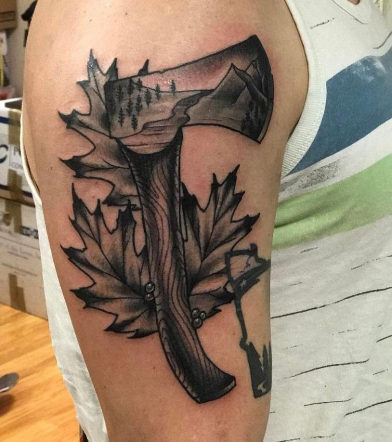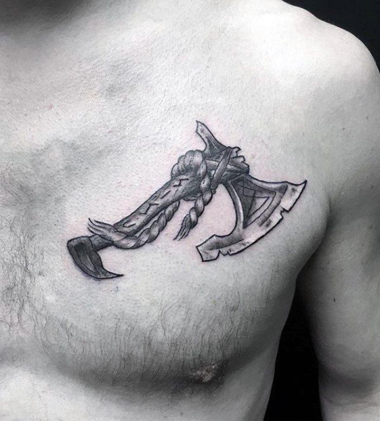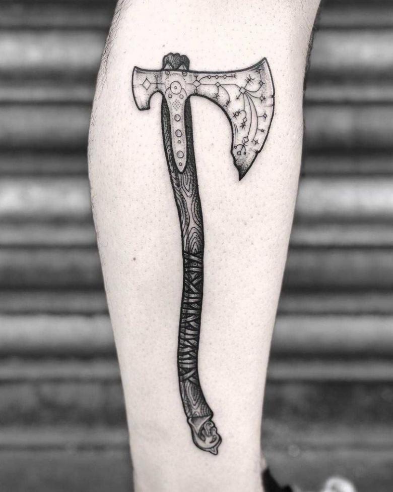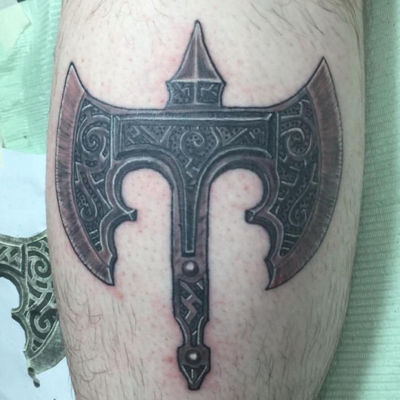- On peut dire que la hache sur le tatouage est caractéristique des personnes courageuses et fortes.