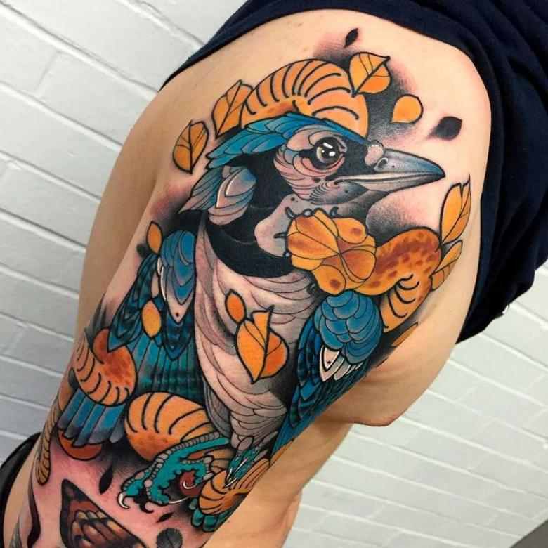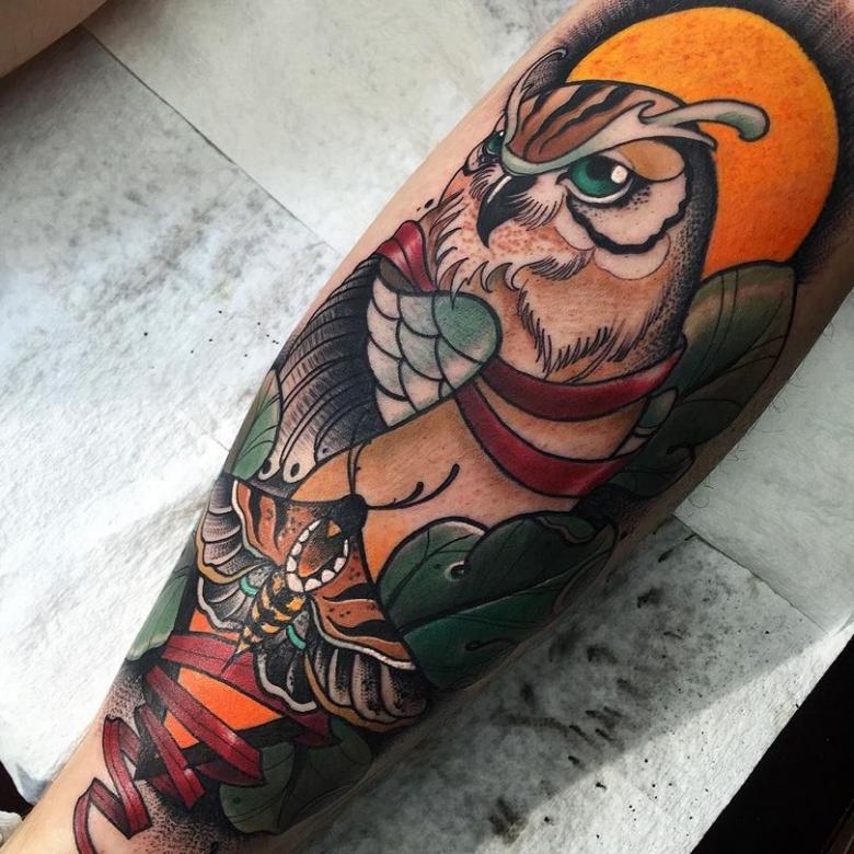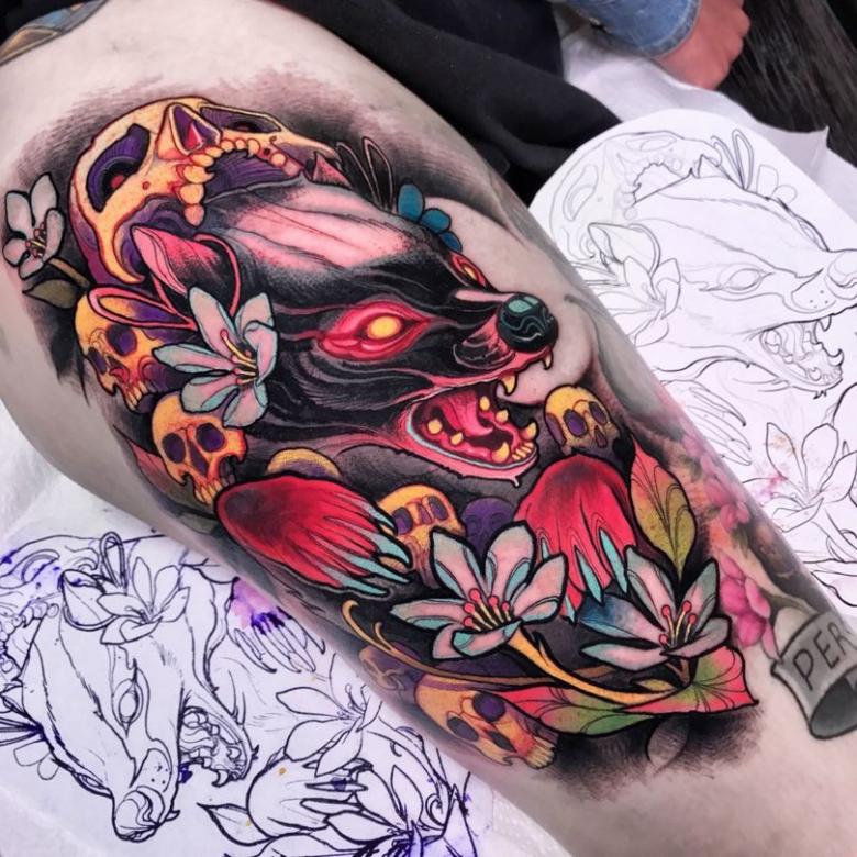 Quant au style visuel proprement dit du tatouage traditionnel, les lignes noires audacieuses et l'utilisation de pigments - tout cela a une application tout à fait rationnelle. L'aspect illustratif peut provenir de dessins européens, mais les lignes noires audacieuses peuvent être une technique tirée des méthodes éprouvées des tatoueurs tribaux appartenant aux peuples polynésiens ou amérindiens.