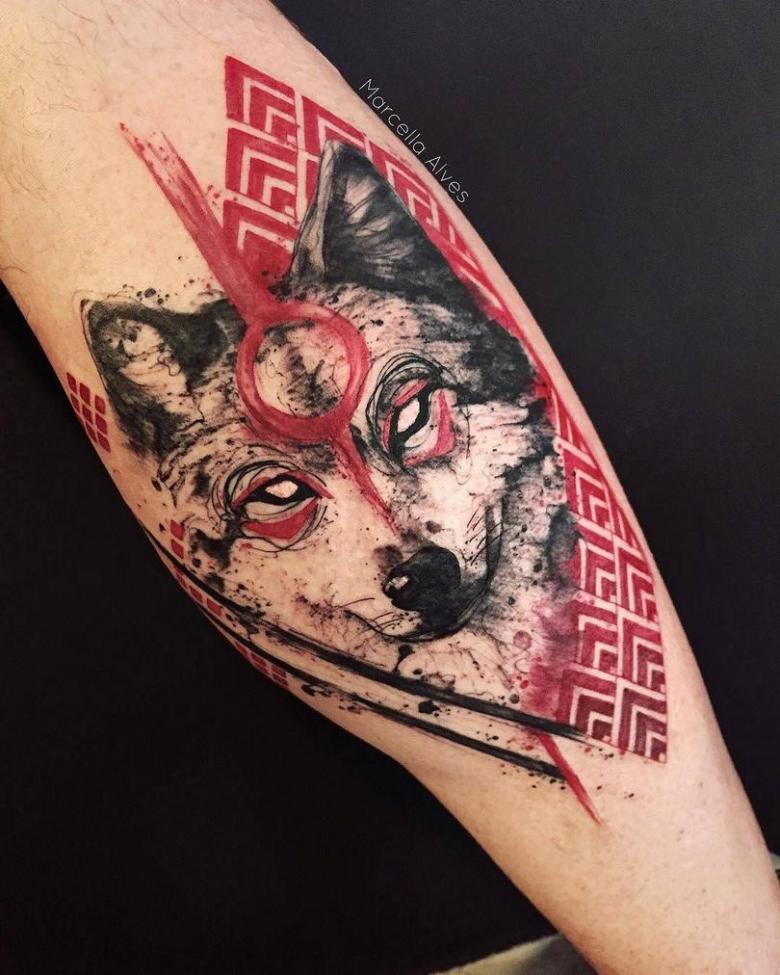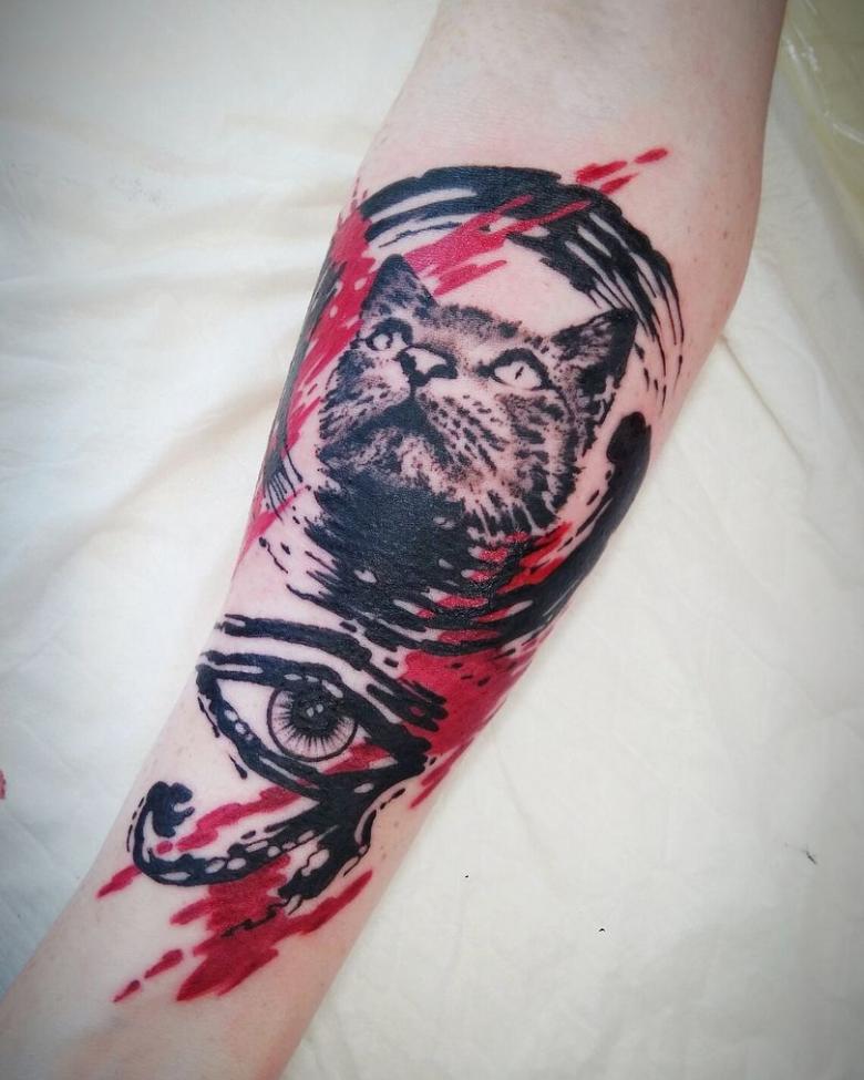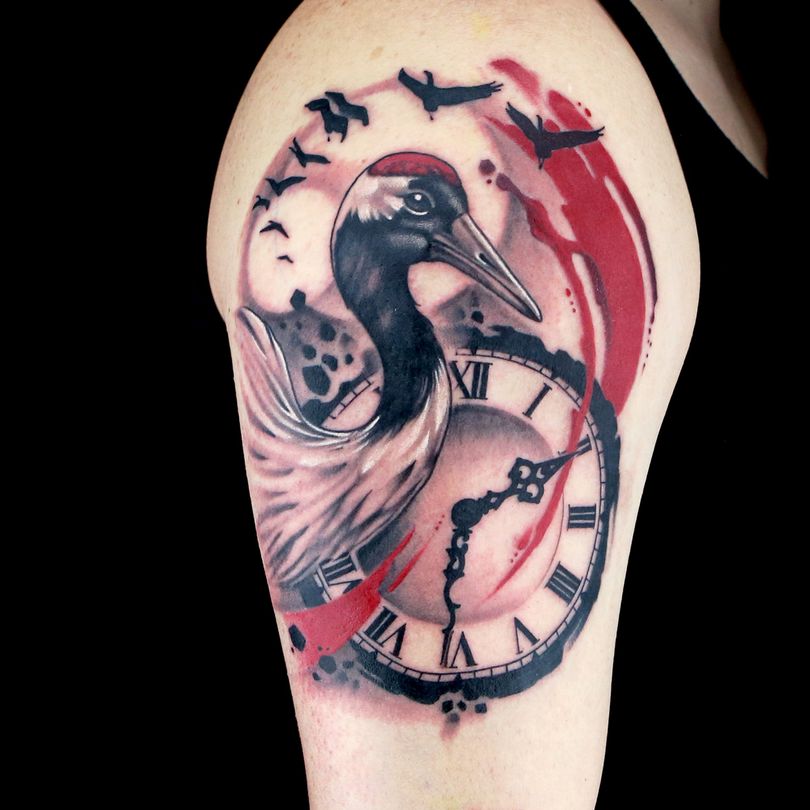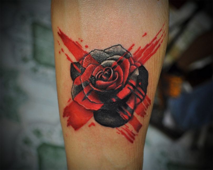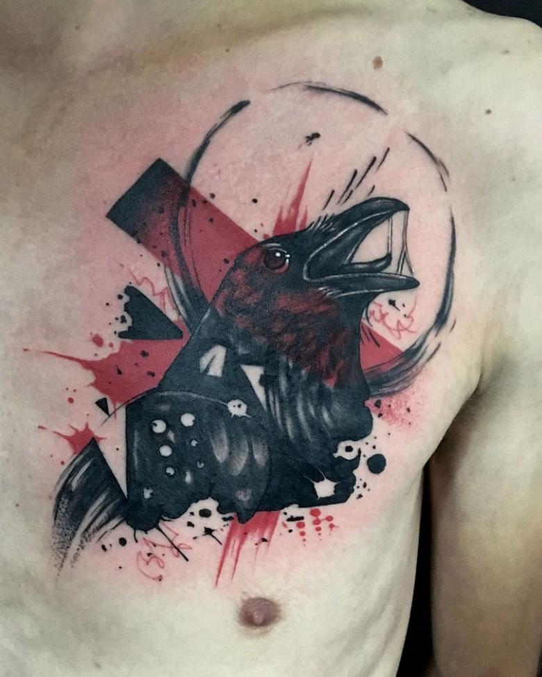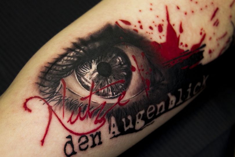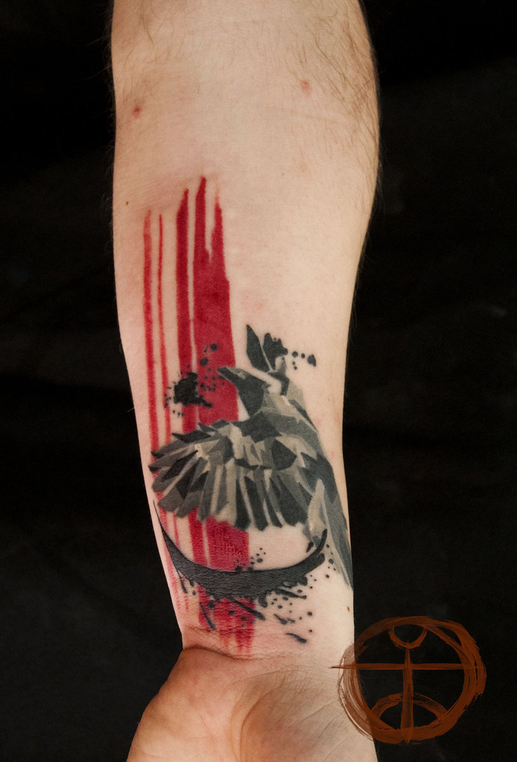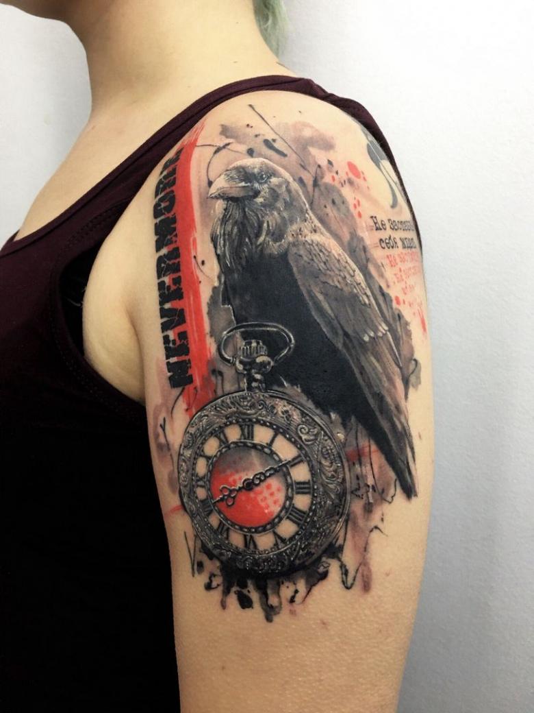 Les maîtres modernes, cependant, n'ont pas peur d'utiliser d'autres couleurs dans le motif, comme le bleu ou le rose vif. L'étymologie du nom du style est également particulière : "thrash" signifie littéralement "ordure" en anglais, mais cette partie doit être prise autrement, comme quelque chose qui transporte avec lui une agitation ; polka - danse folklorique rapide, ce mot caractérise la nature du style de ce tatouage et l'état interne du porteur de l'image, comme s'il cherchait à quitter la toile organique, à aller au-delà de leur réalité.