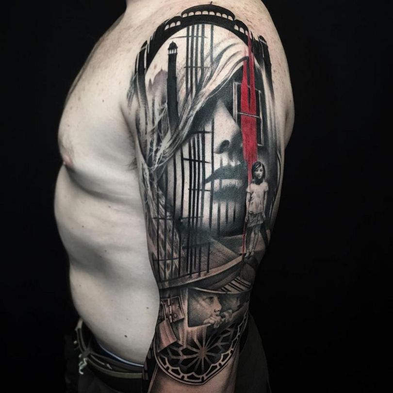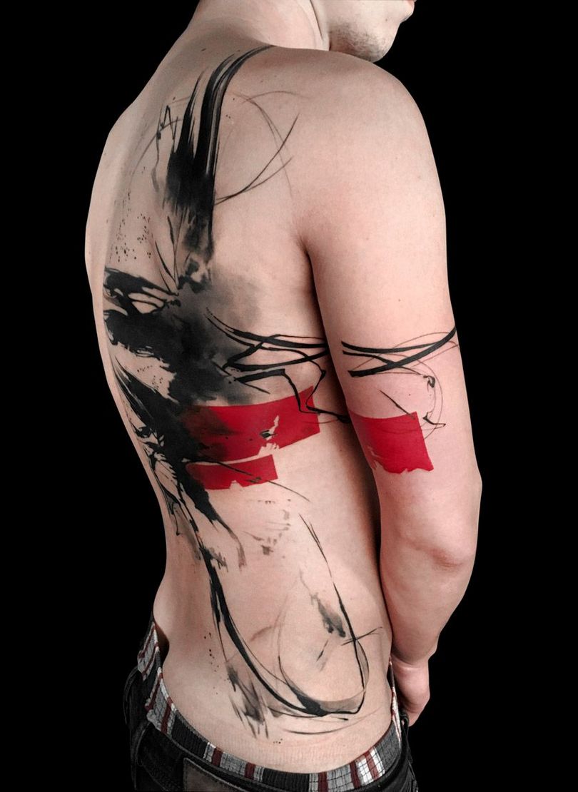 - Volumétrie - ces tatouages peuvent couvrir une grande surface et passer, par exemple, des bras aux épaules et au dos ;