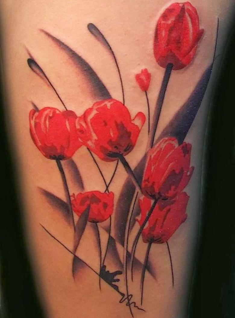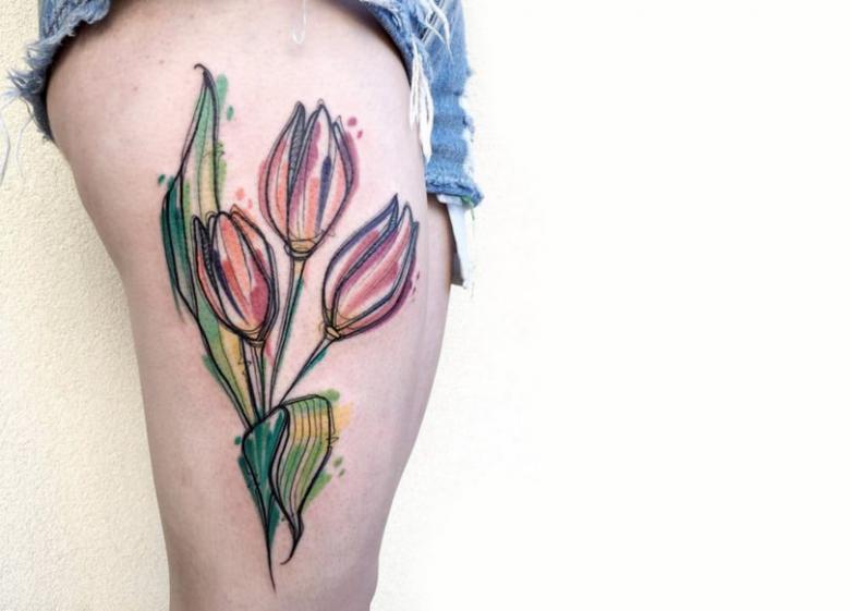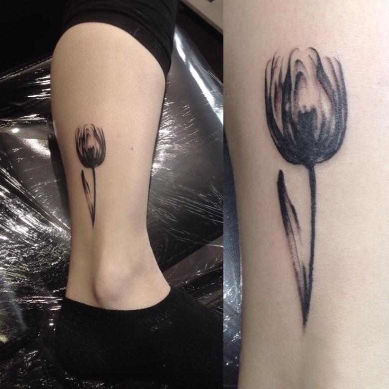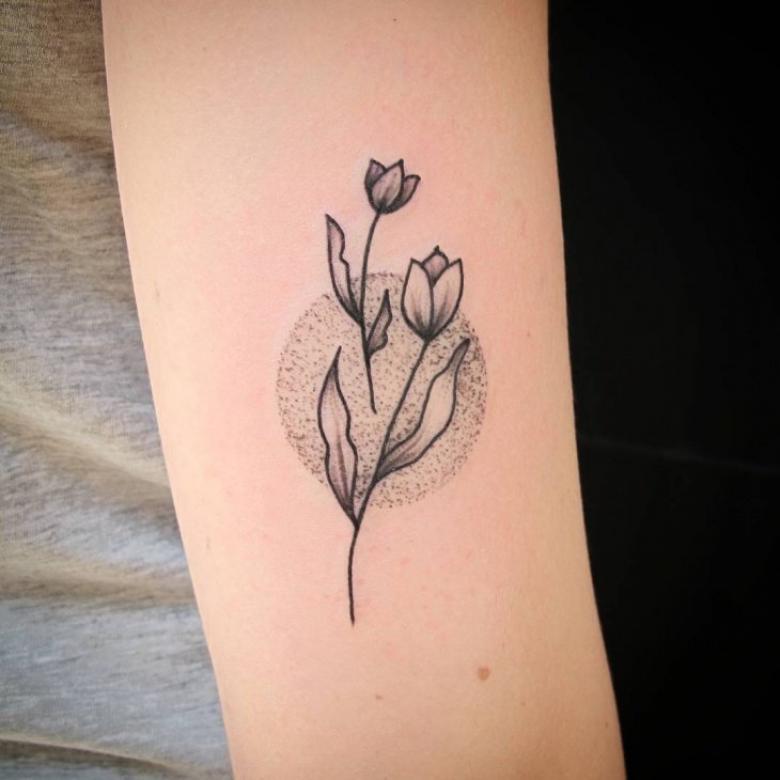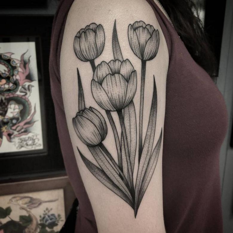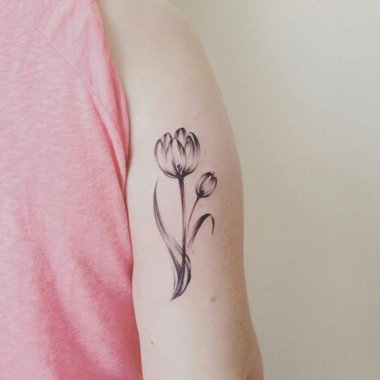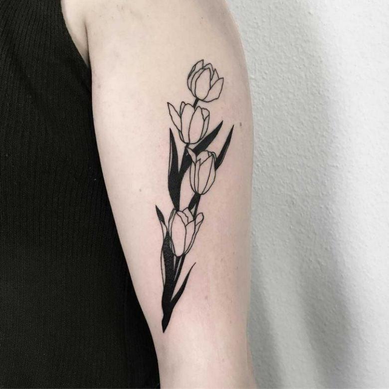 Tulipe tattoo - description complète du tatouage (y compris la tulipe noire), vignettes et significations pour les filles et les hommes, où appliquer (sur le bras, l'épaule), idées de photos