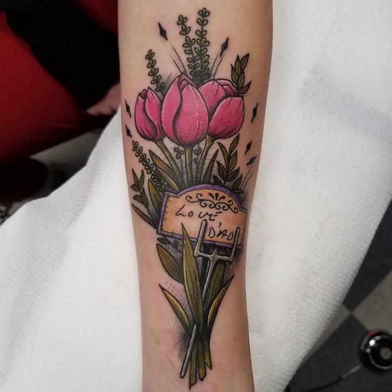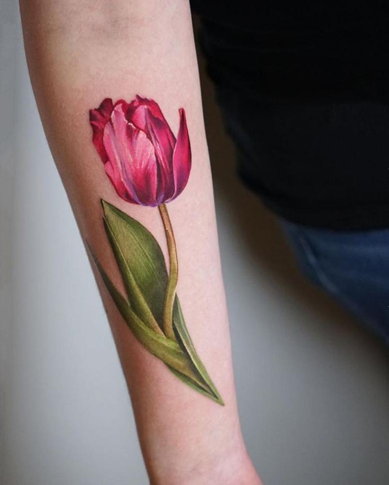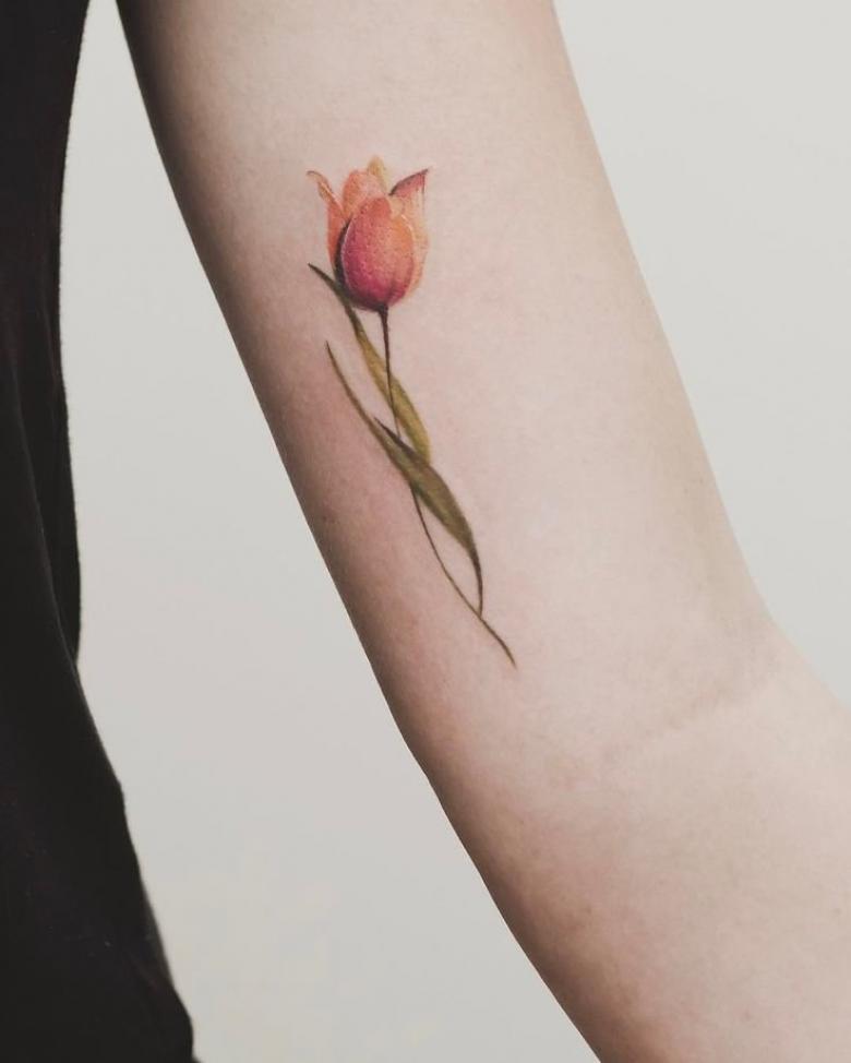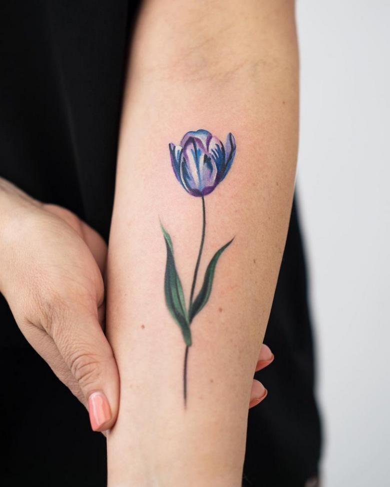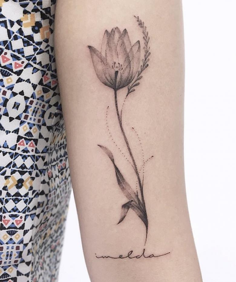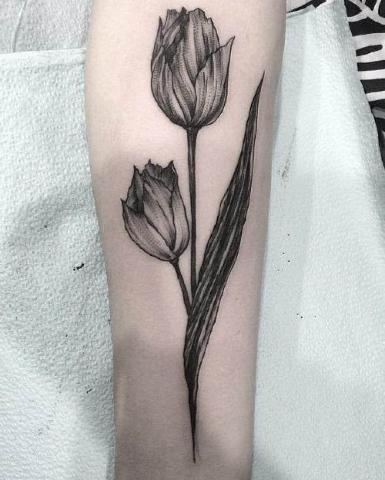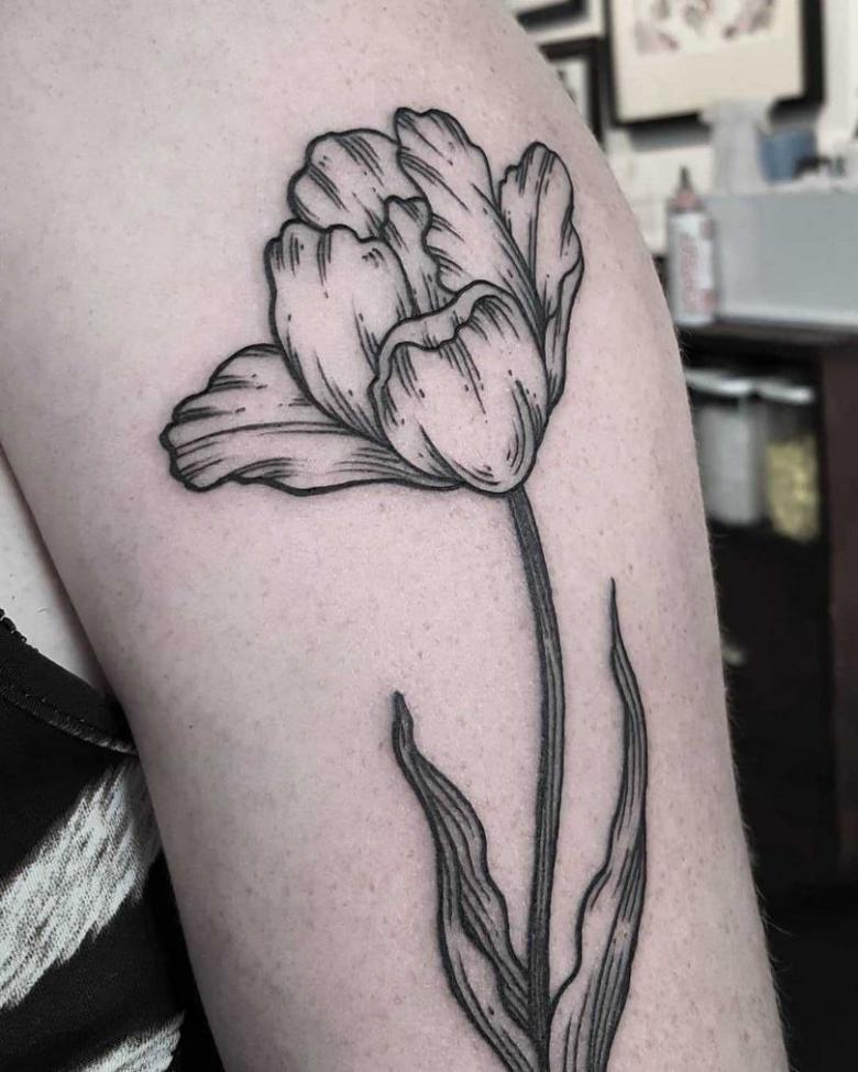 Un tatouage de tulipe est parfait pour une personne positive et ouverte d'esprit qui n'a pas peur de montrer ses sentiments et ses expériences.