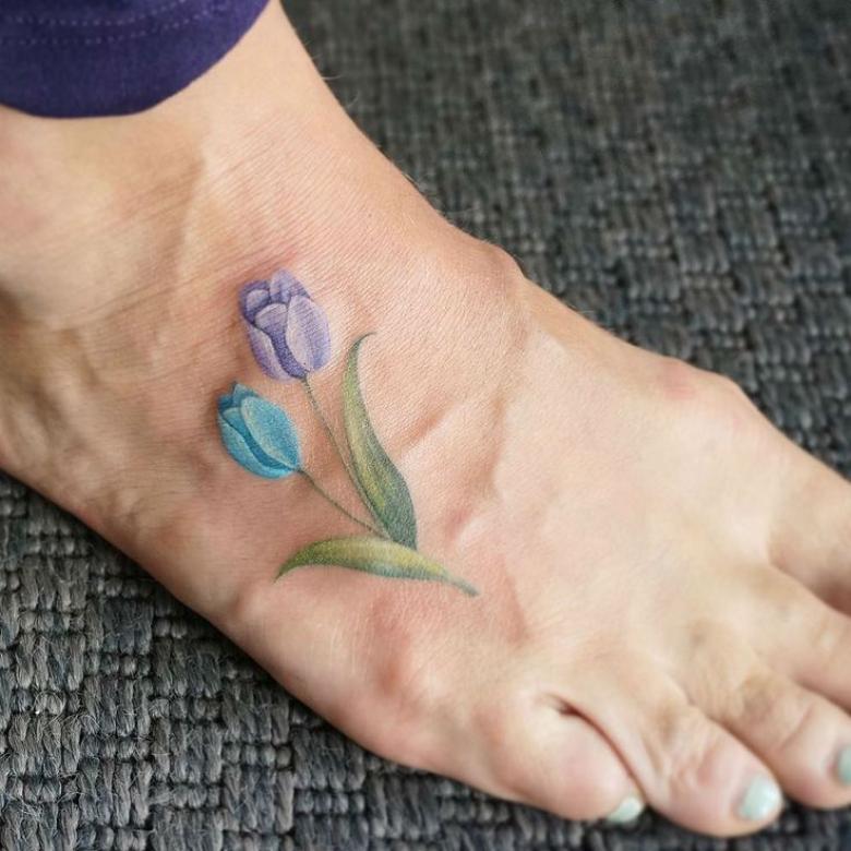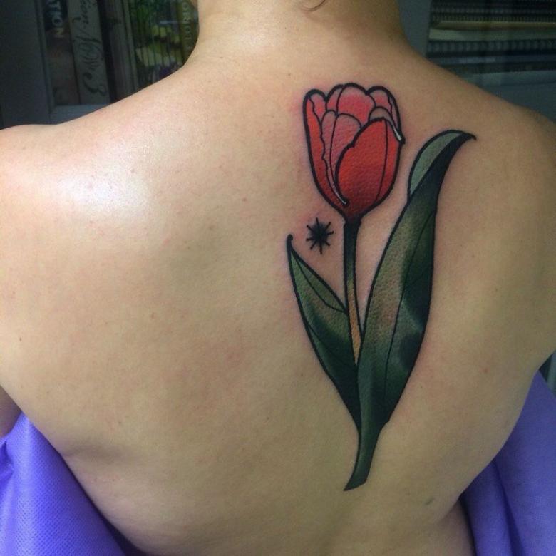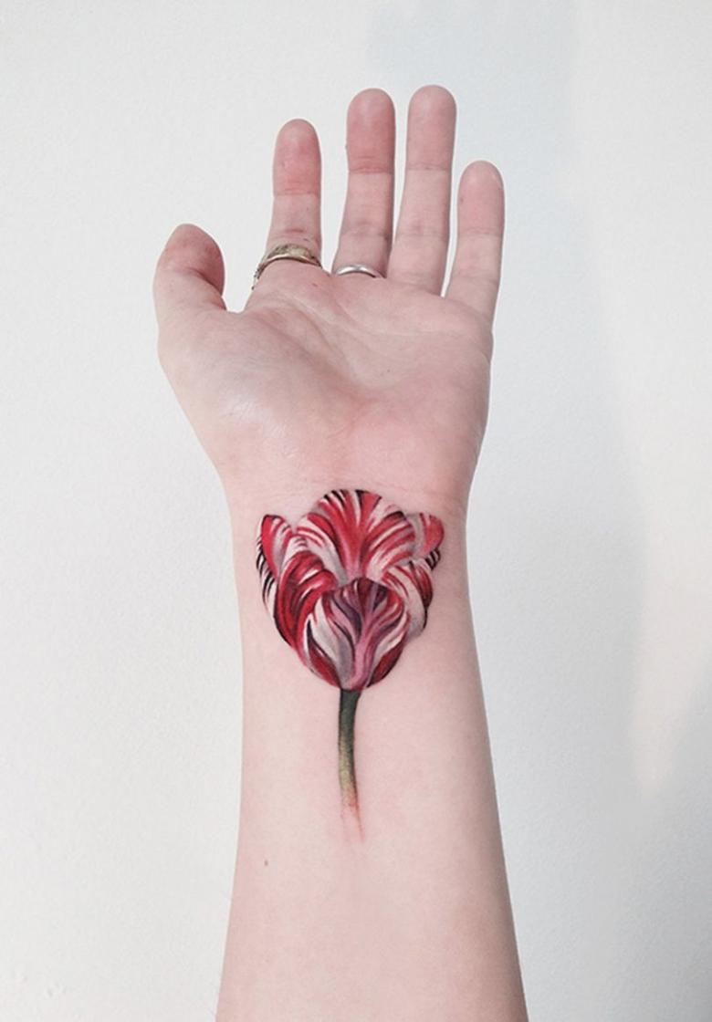 Pour démontrer leur sophistication et leur tempérament, il est préférable de choisir une place ouverte. Le bras ou l'épaule, par exemple, est un bon endroit pour une tulipe.