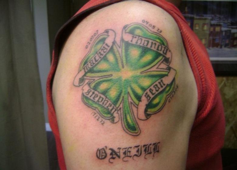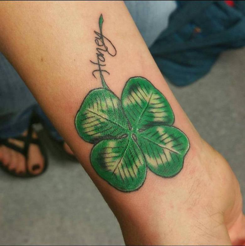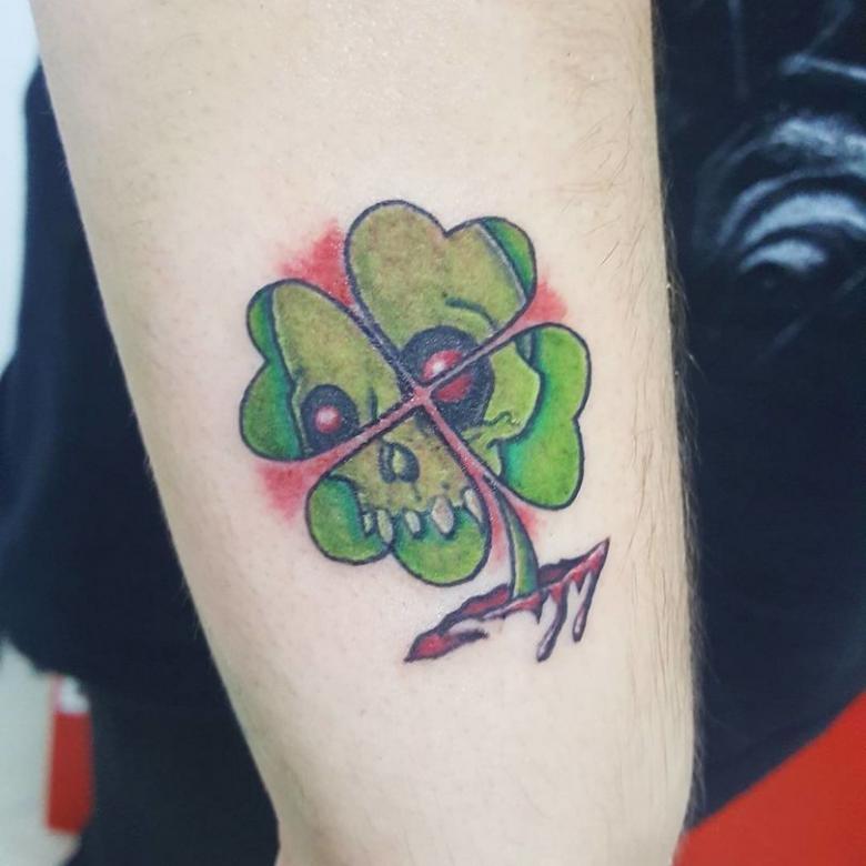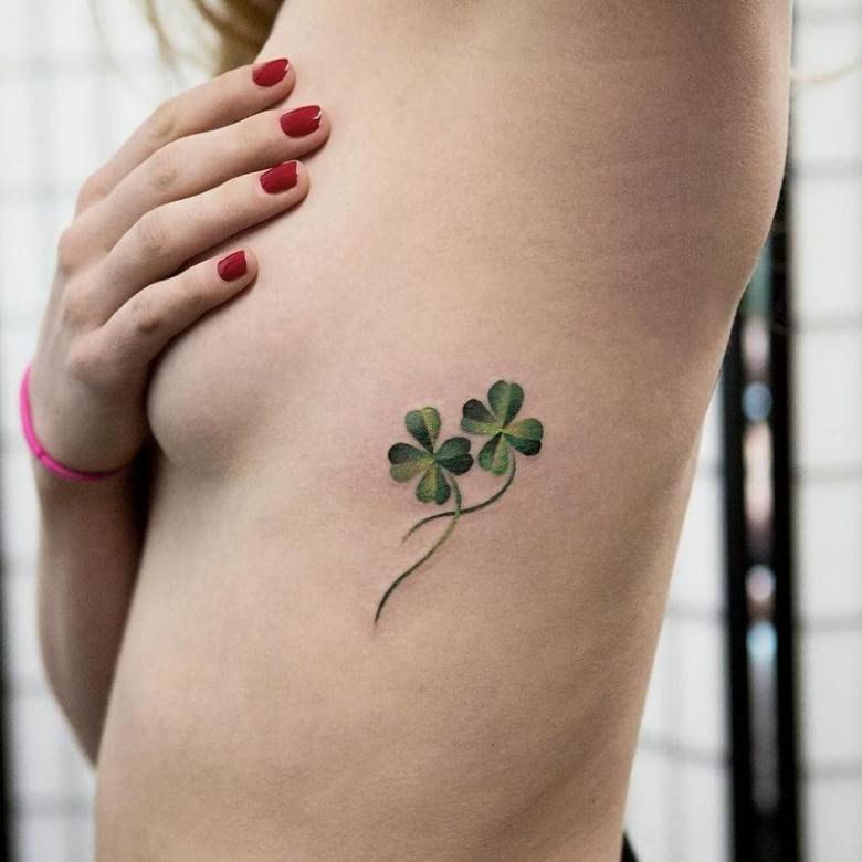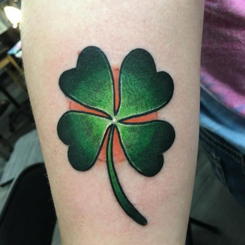 Malheureusement, dans les villes modernes, il devient difficile de trouver un trèfle commun, et encore moins un trèfle à quatre feuilles. Pour attirer la chance dans la vie, l'image d'une plante aussi disgracieuse dans la nature sera améliorée. De plus, les tatouages avec trèfle peuvent être des images monochromes et colorées, remplissant le corps du porteur de couleurs multicolores et attirant la richesse, l'amour, la chance dans sa vie.