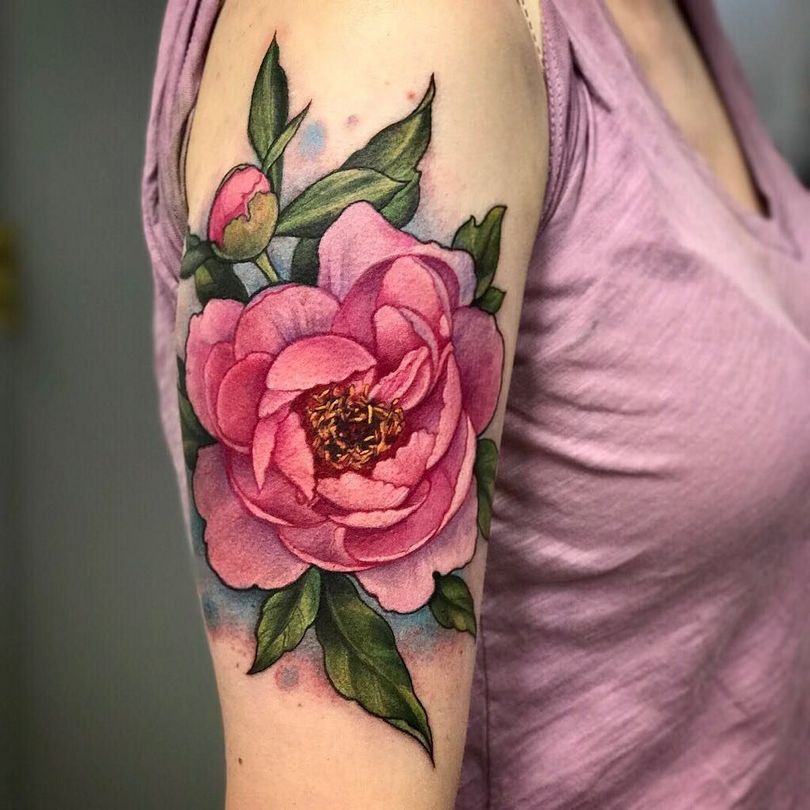 - La pivoine a longtemps été considérée comme un symbole traditionnel d'attraction de la richesse. Cette fleur ornée, selon les croyances orientales, devrait se trouver dans chaque maison. C'est également un tatouage très beau et frappant qui ne manquera pas d'attirer l'attention sur son porteur.